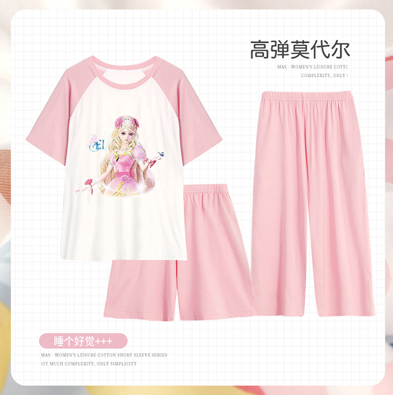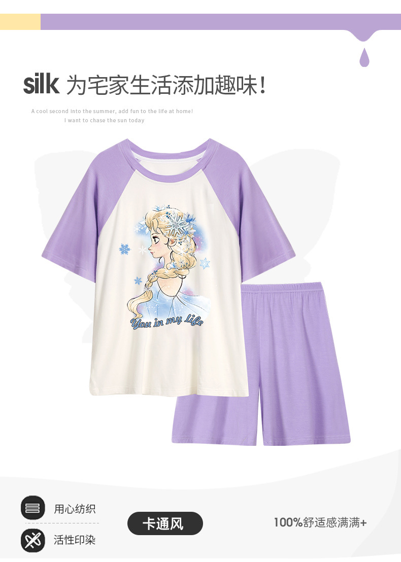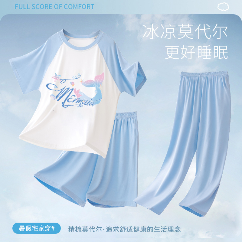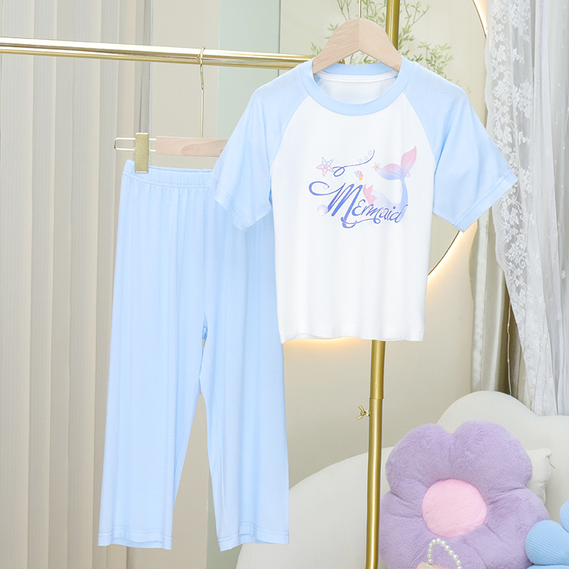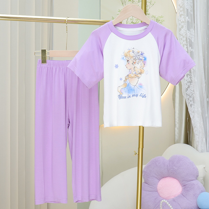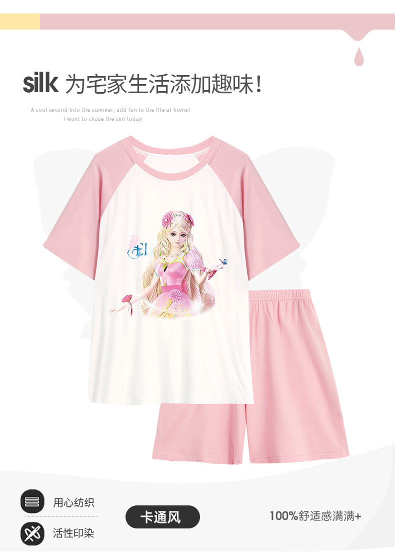 2024 여름 신상 여아 모달 홈웨어 세트 어린이용 가볍고 통기성 좋은 잠옷 투피스 세트 만화 그림스토어 가기