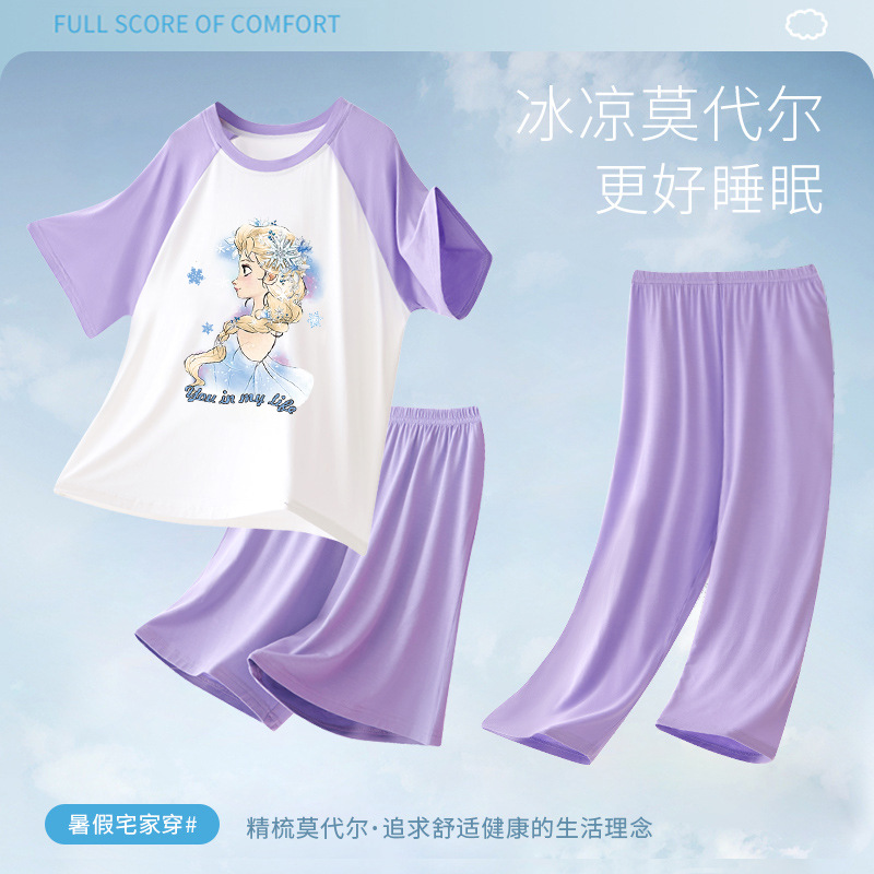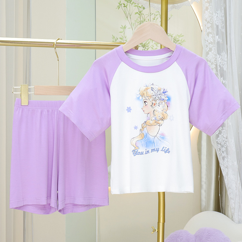 2024 여름 신상 여아 모달 홈웨어 세트 어린이용 가볍고 통기성 좋은 잠옷 투피스 세트 만화 그림