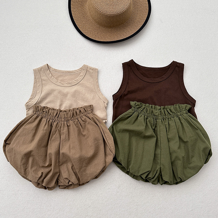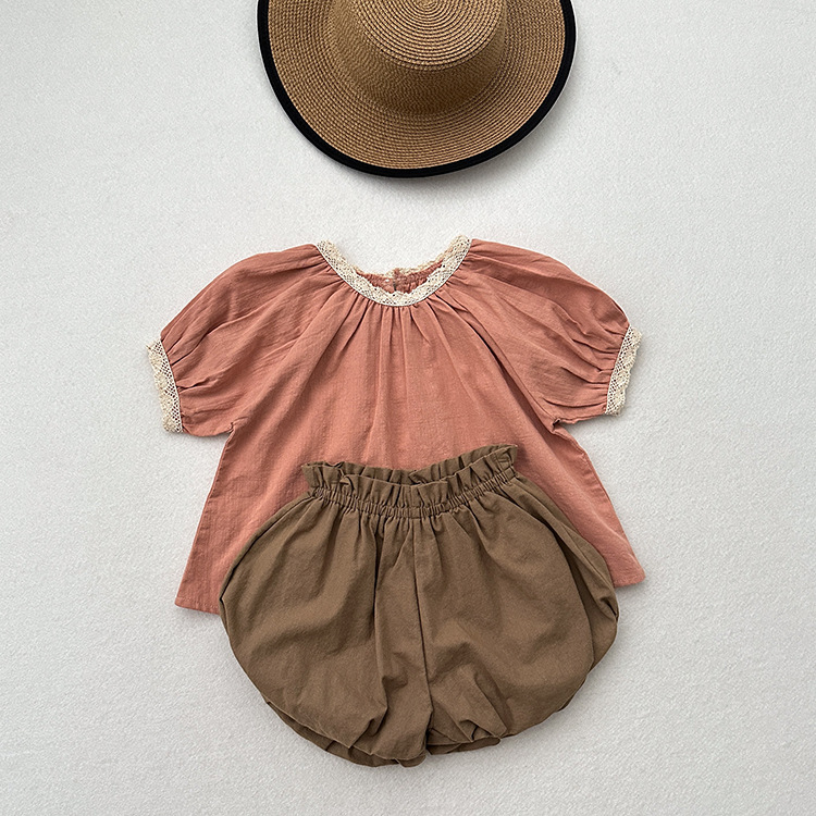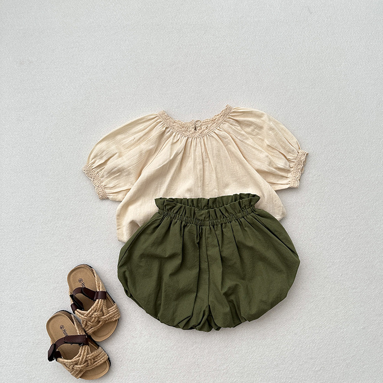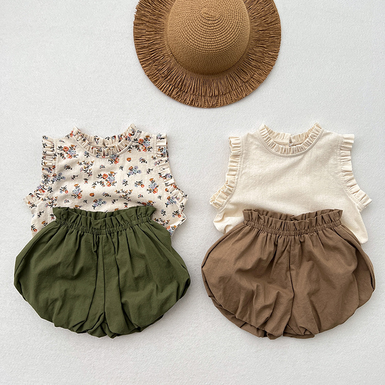Ins Mori 일반 색상 ~ 여름 새로운 어린이 한 풍면과 린넨 반바지 소년과 소녀를위한 아기 부드러운 꽃 봉우리 바지 호박 바지스토어 가기