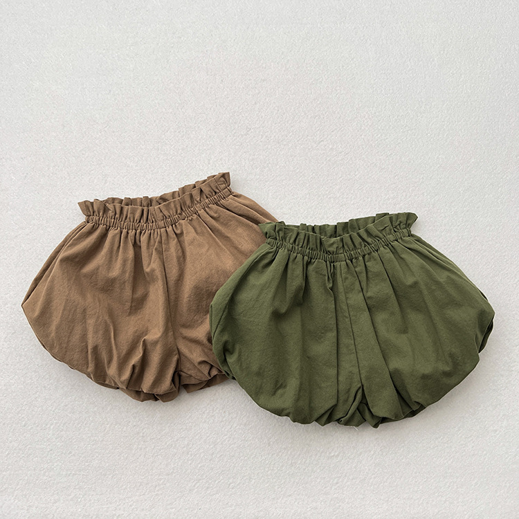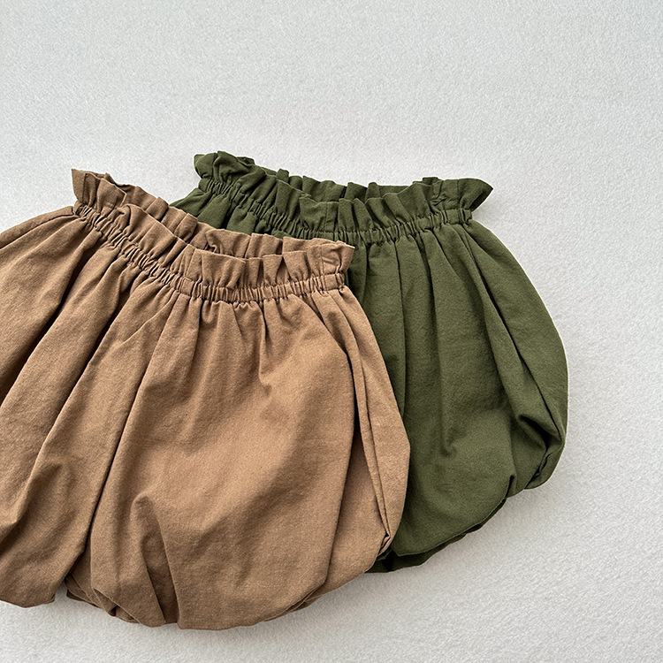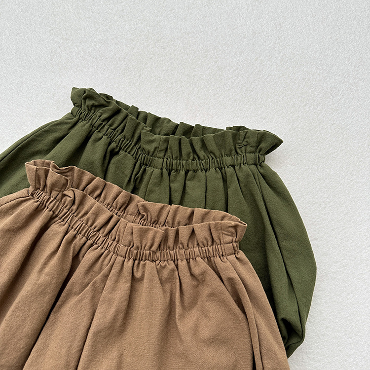 Ins Mori 일반 색상 ~ 여름 새로운 어린이 한 풍면과 린넨 반바지 소년과 소녀를위한 아기 부드러운 꽃 봉우리 바지 호박 바지