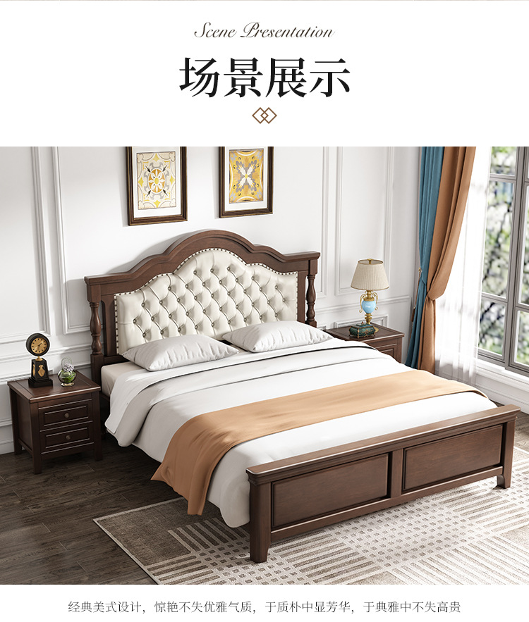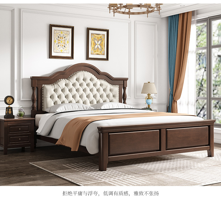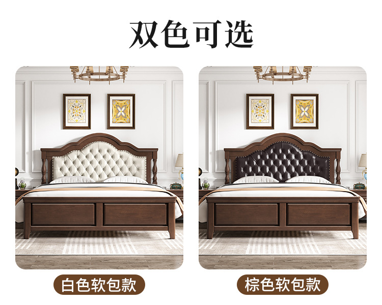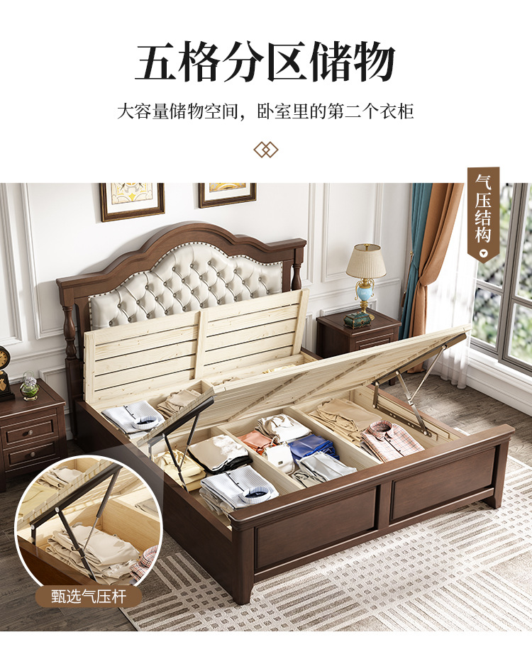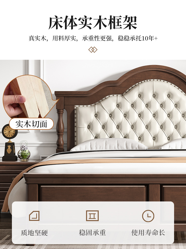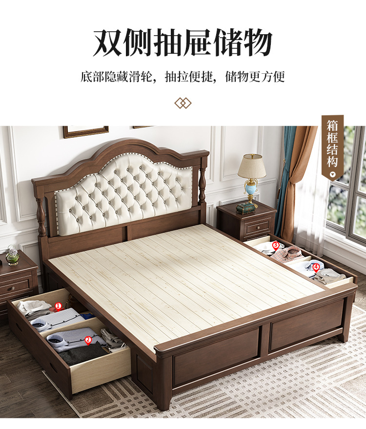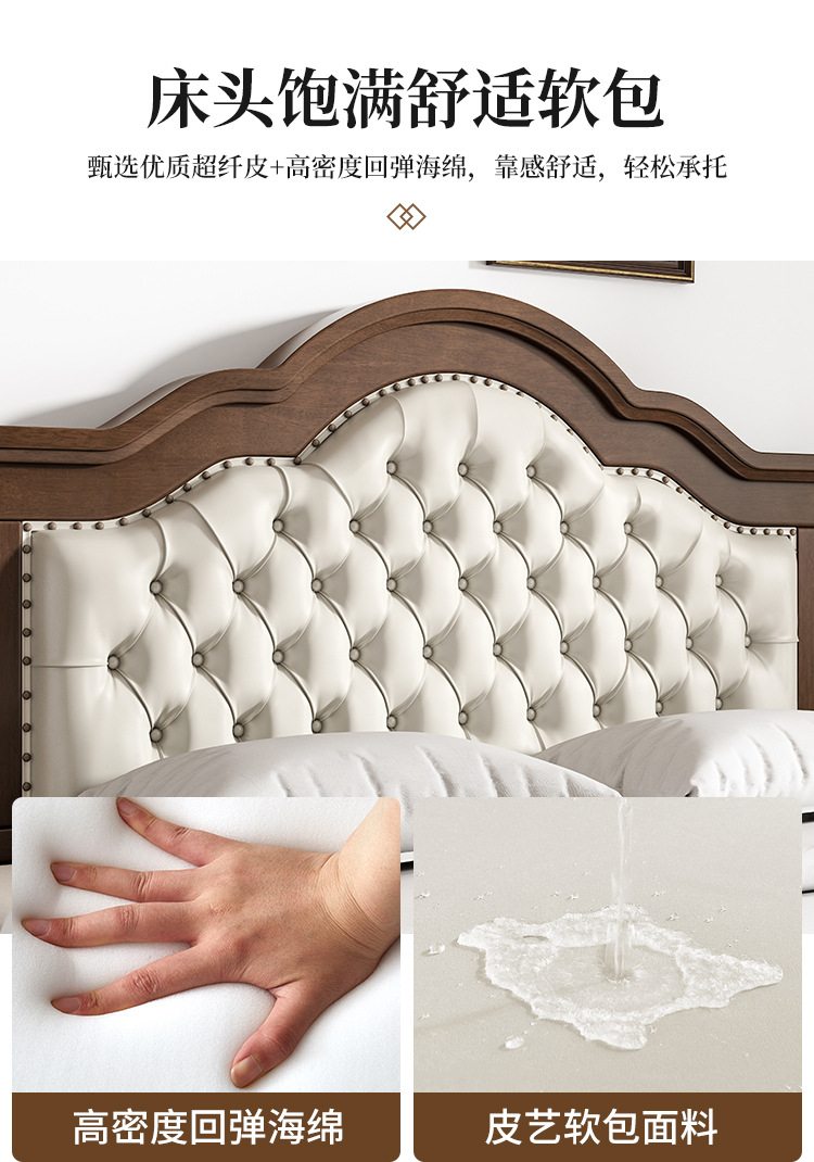 미국식 원목 침대 레트로 1.5m 싱글 1.8m 더블 침대 마스터룸 가죽 소프트백 공주형 하이박스 수납 웨딩 침대