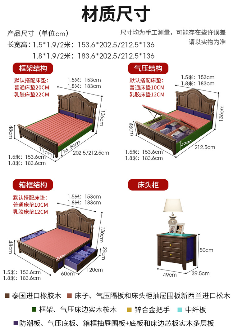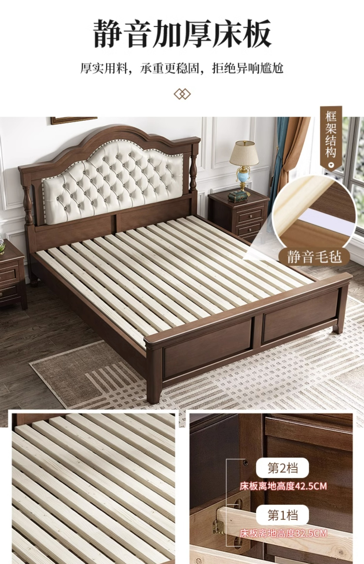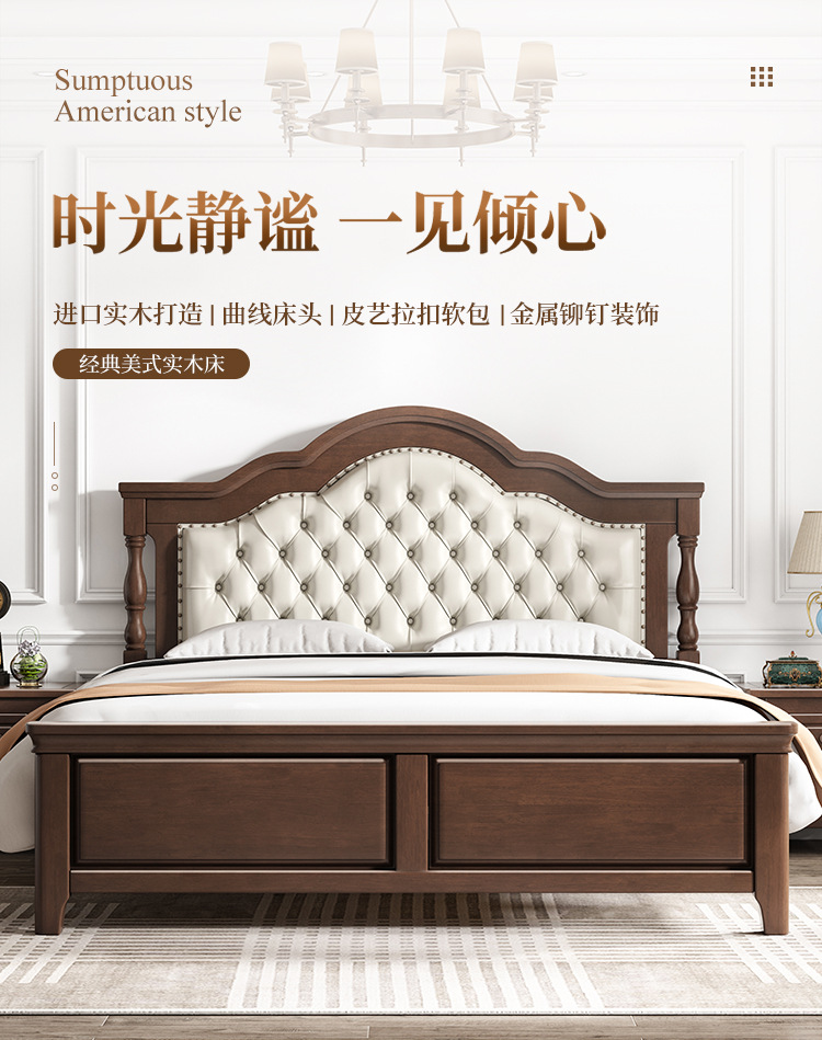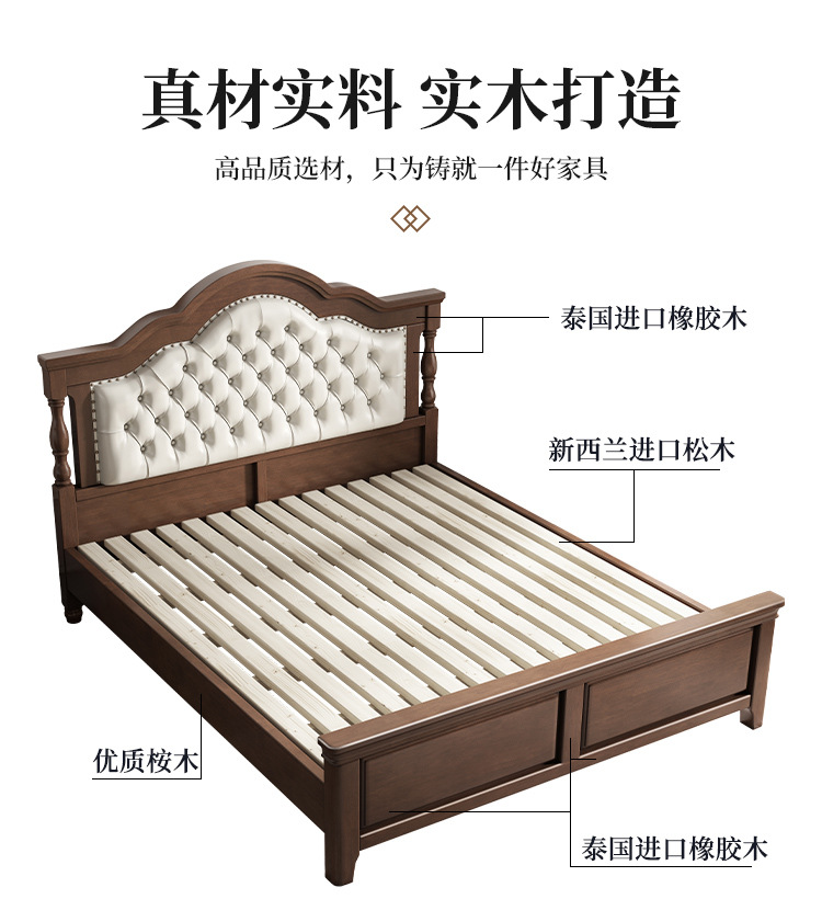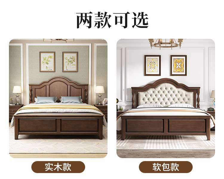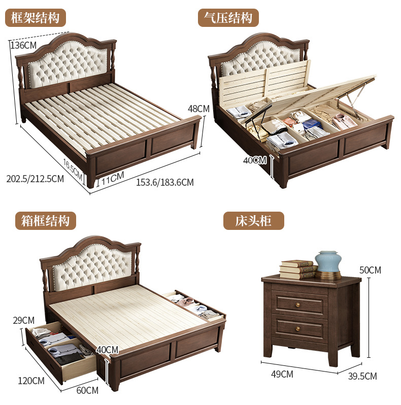 미국식 원목 침대 레트로 1.5m 싱글 1.8m 더블 침대 마스터룸 가죽 소프트백 공주형 하이박스 수납 웨딩 침대