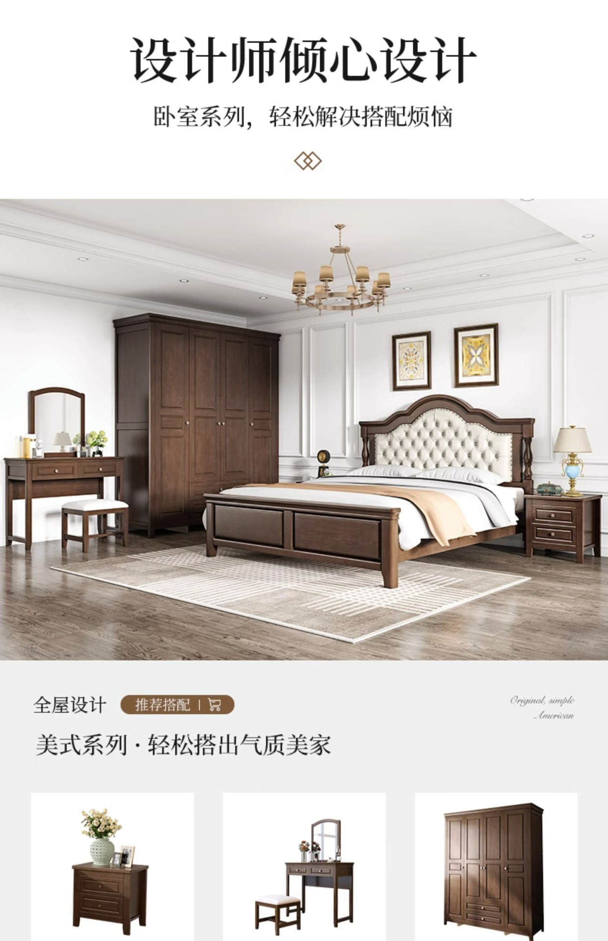 미국식 원목 침대 레트로 1.5m 싱글 1.8m 더블 침대 마스터룸 가죽 소프트백 공주형 하이박스 수납 웨딩 침대스토어 가기