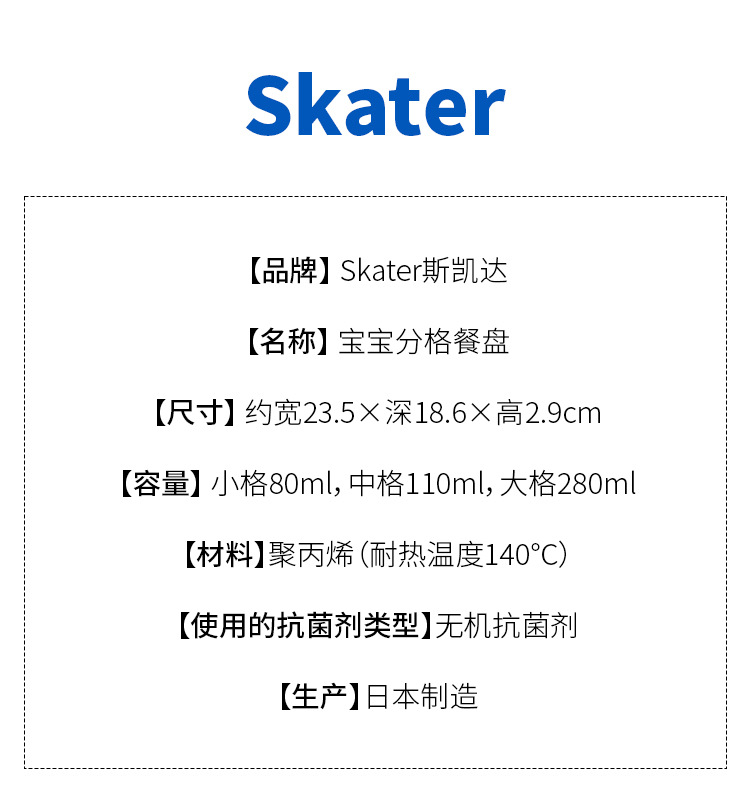 일본 수입 스케이터 3칸 어린이 과일 아침식사 접시, 분리형 서양식 접시, 사각 접시스토어 가기