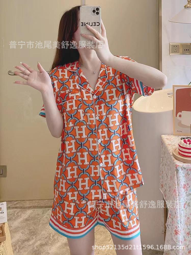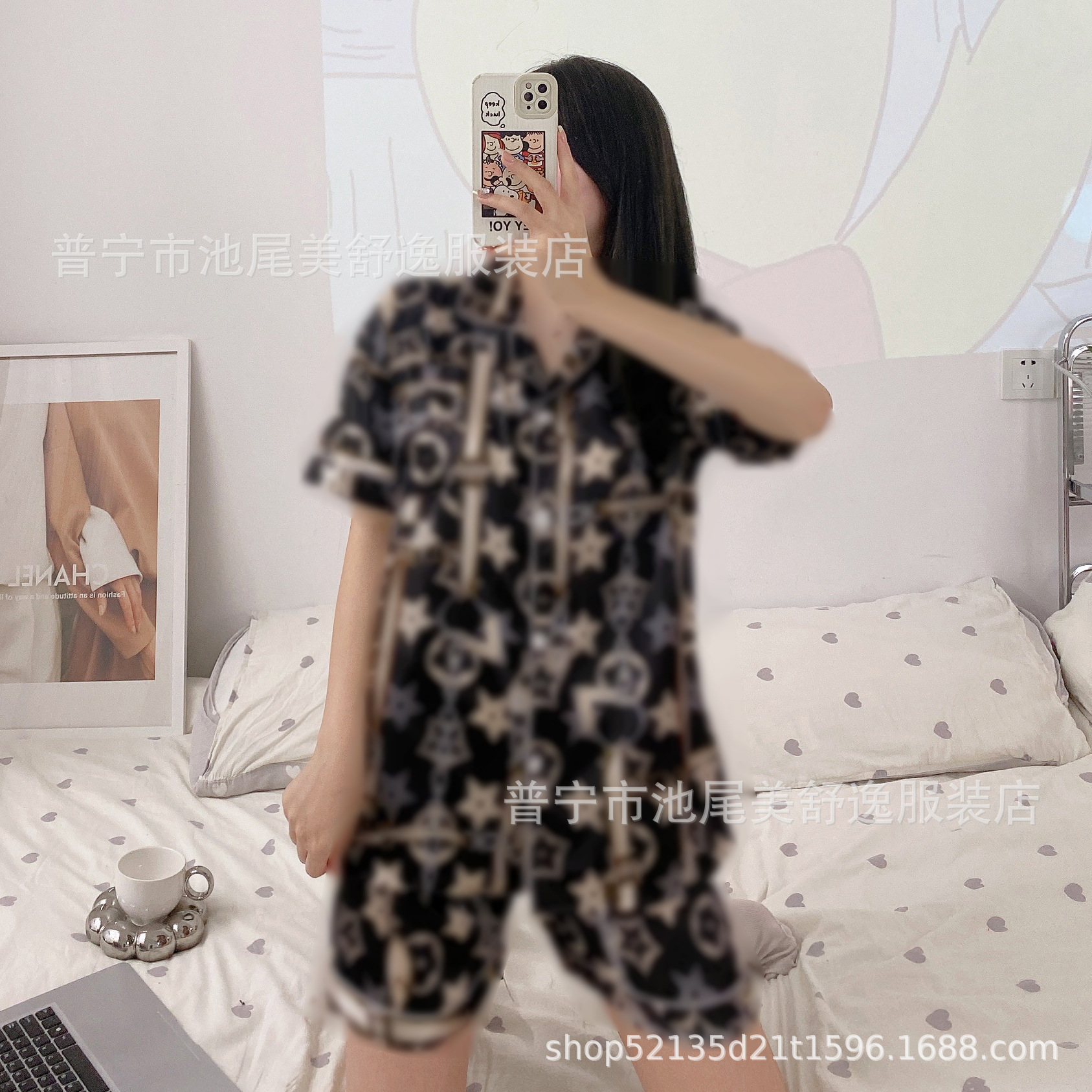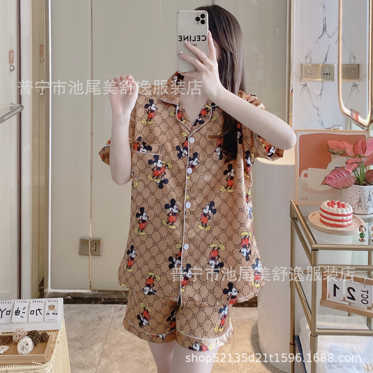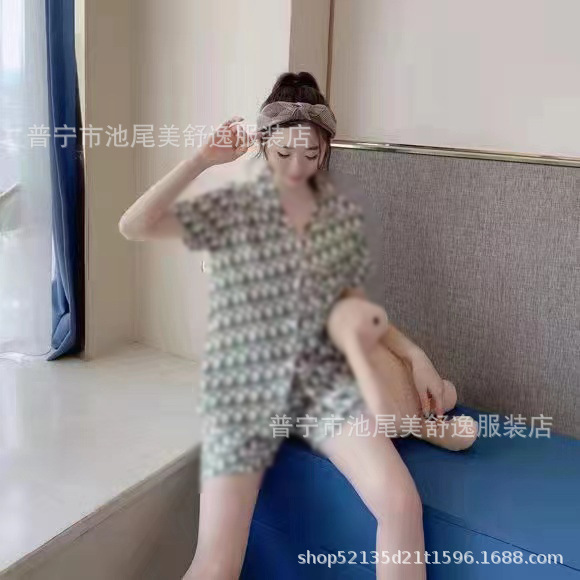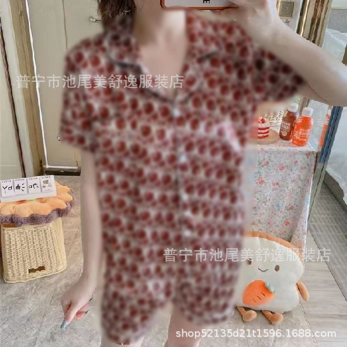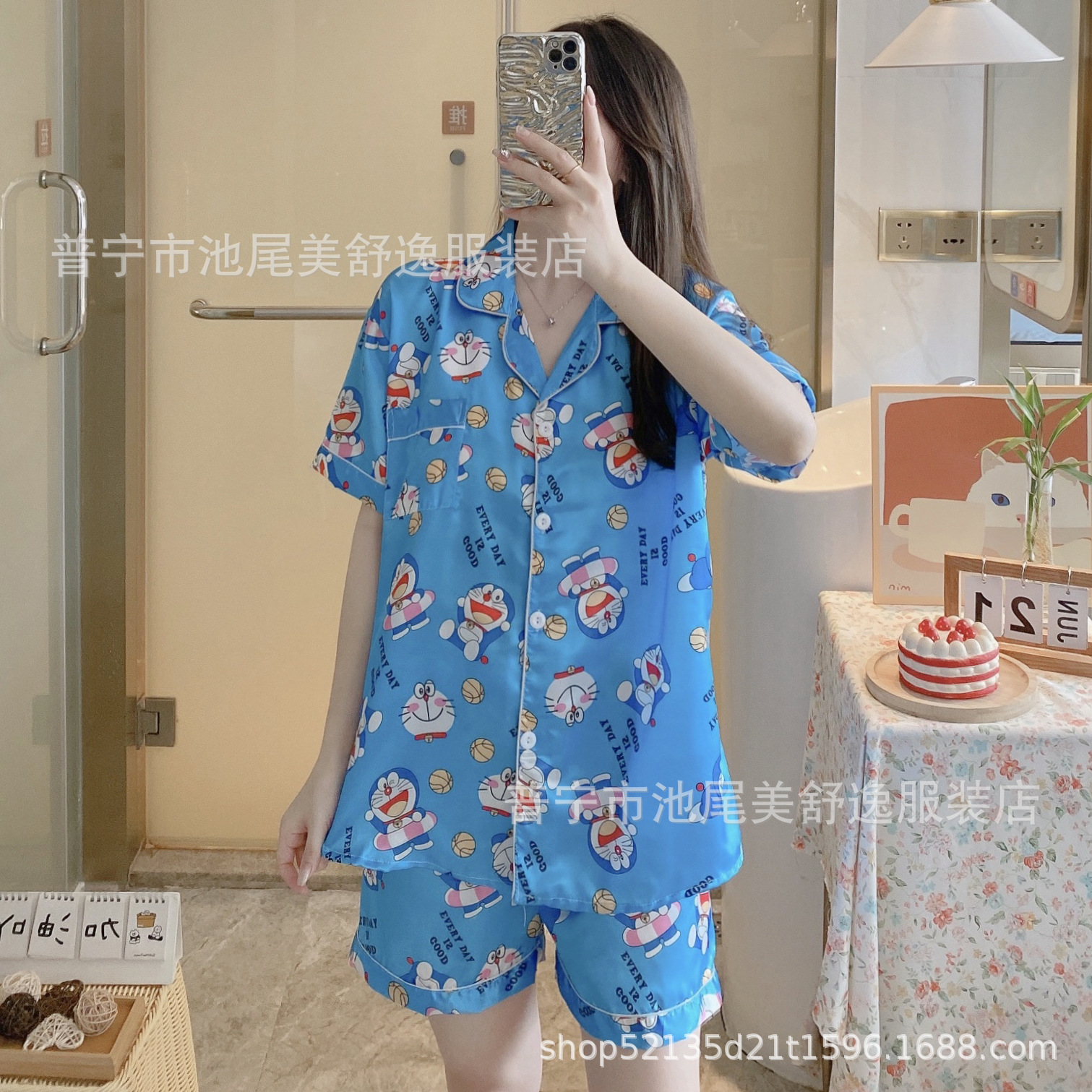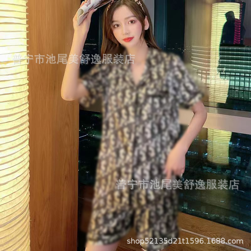 유럽과 미국 대외 무역 도매 공장 아이스 실크 잠옷 여성 여름 반팔 반바지 모조 실크 카디건 가정 옷 세트 여성스토어 가기