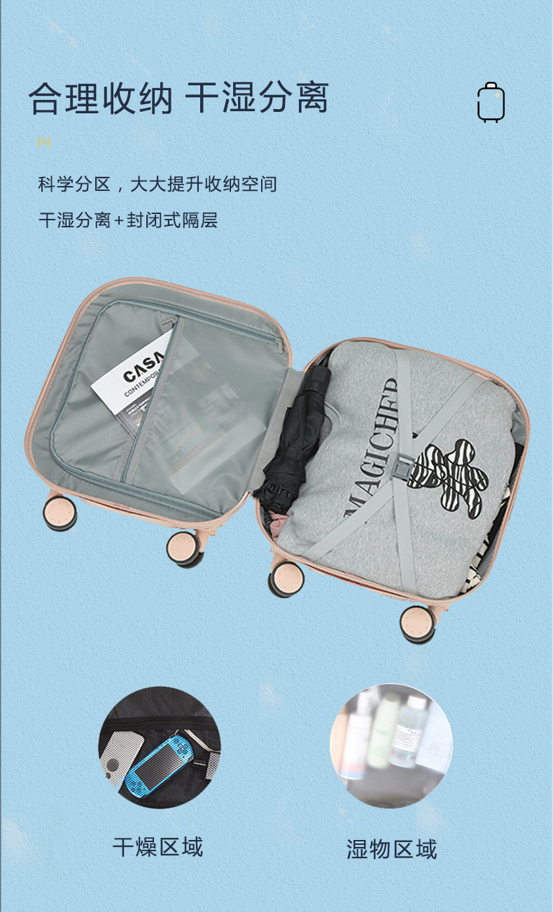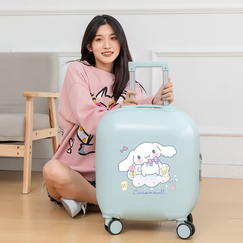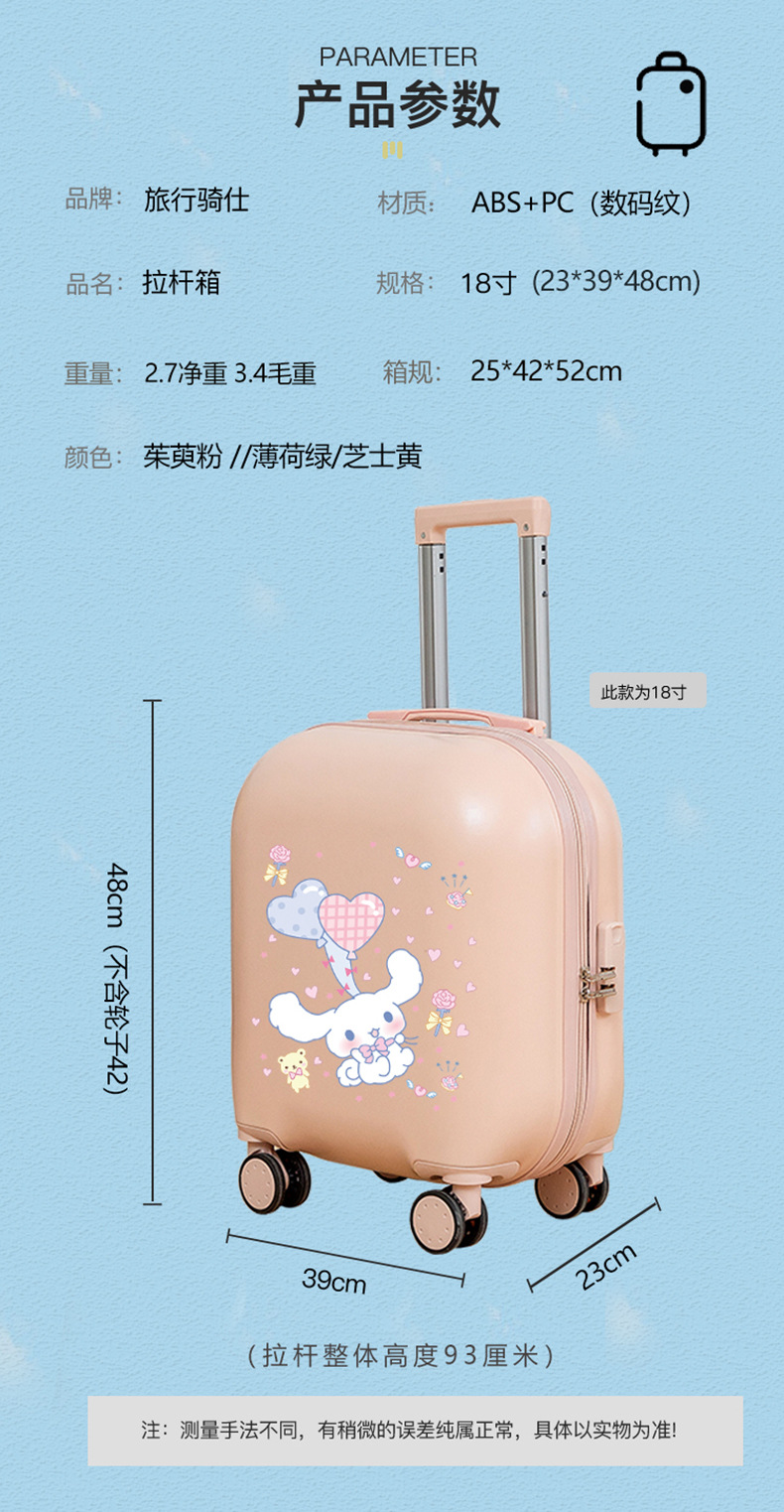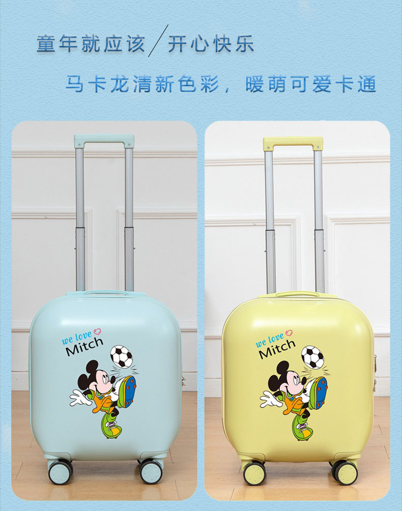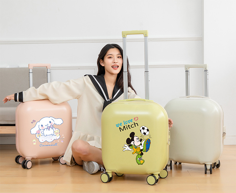 어린이 만화 수하물 18 인치 소년과 소녀를위한 소형 휴대용 탑승 트롤리 케이스 앉아있는 유니버설 휠 가방