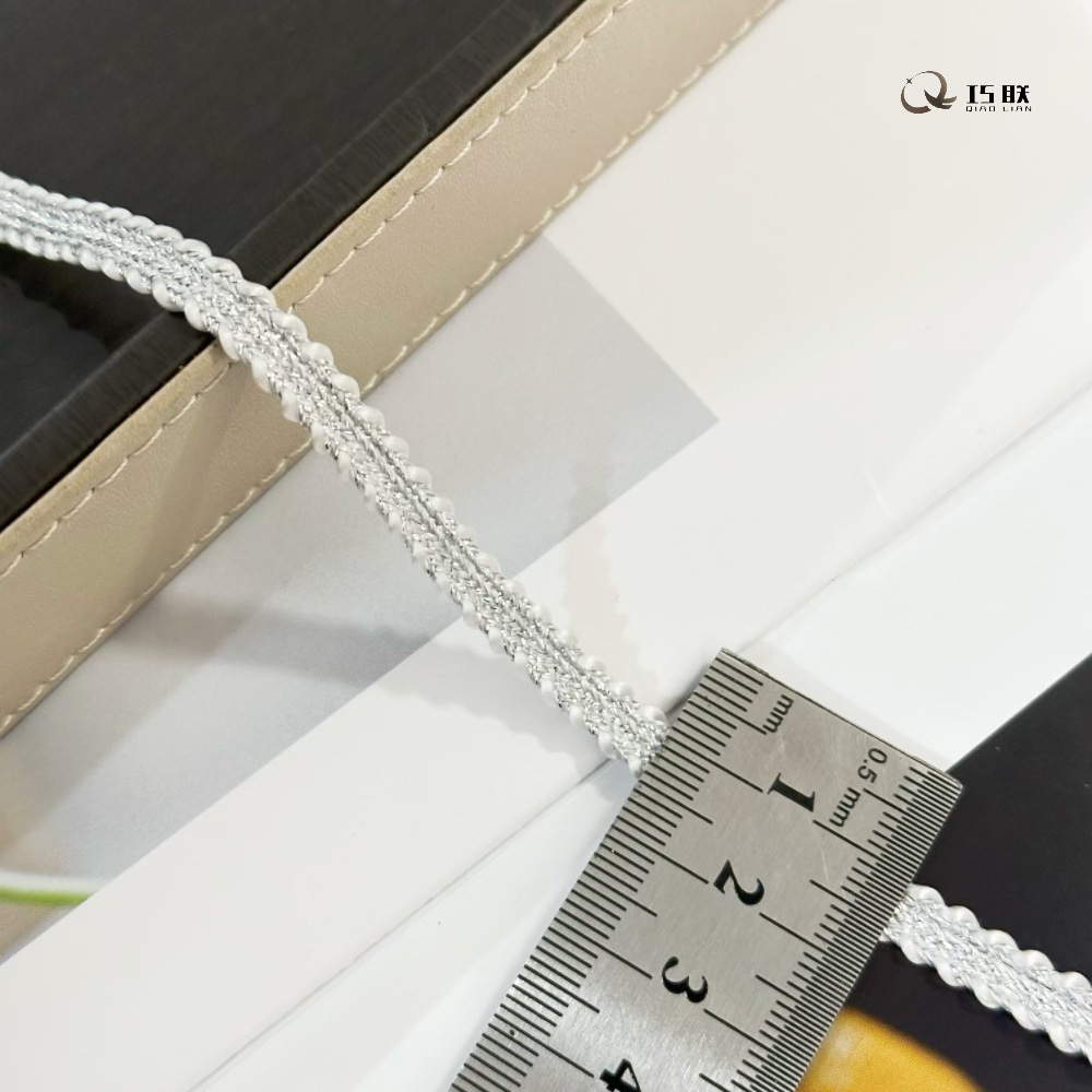 0.7cm 작은 향기로운 스타일 금색과 실버 실크 더블 구슬 리본 의류 네크 라인 스커트 수하물 장식 레이스 액세서리