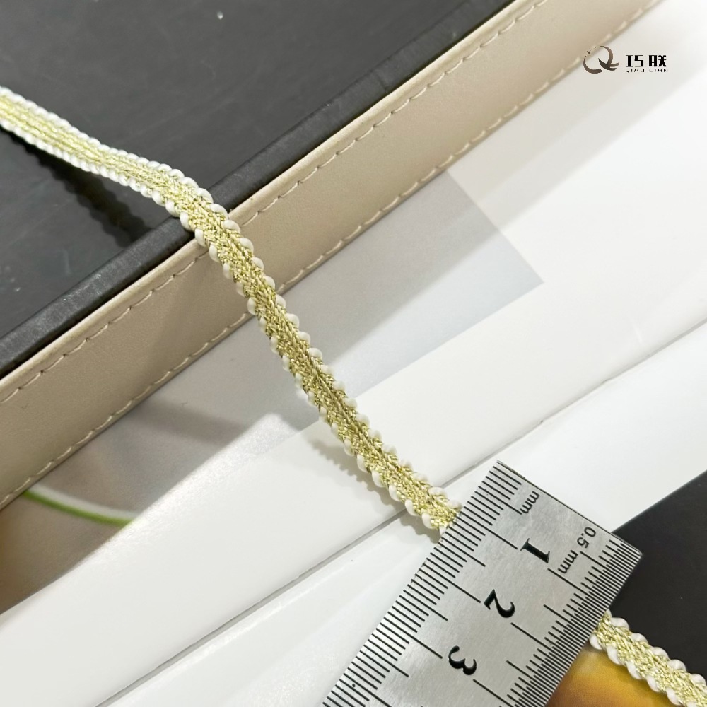 0.7cm 작은 향기로운 스타일 금색과 실버 실크 더블 구슬 리본 의류 네크 라인 스커트 수하물 장식 레이스 액세서리스토어 가기