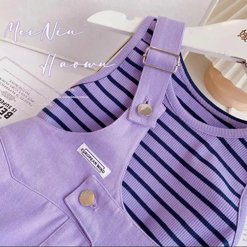 • 스트라이프 조끼 + 어깨 끈 반바지