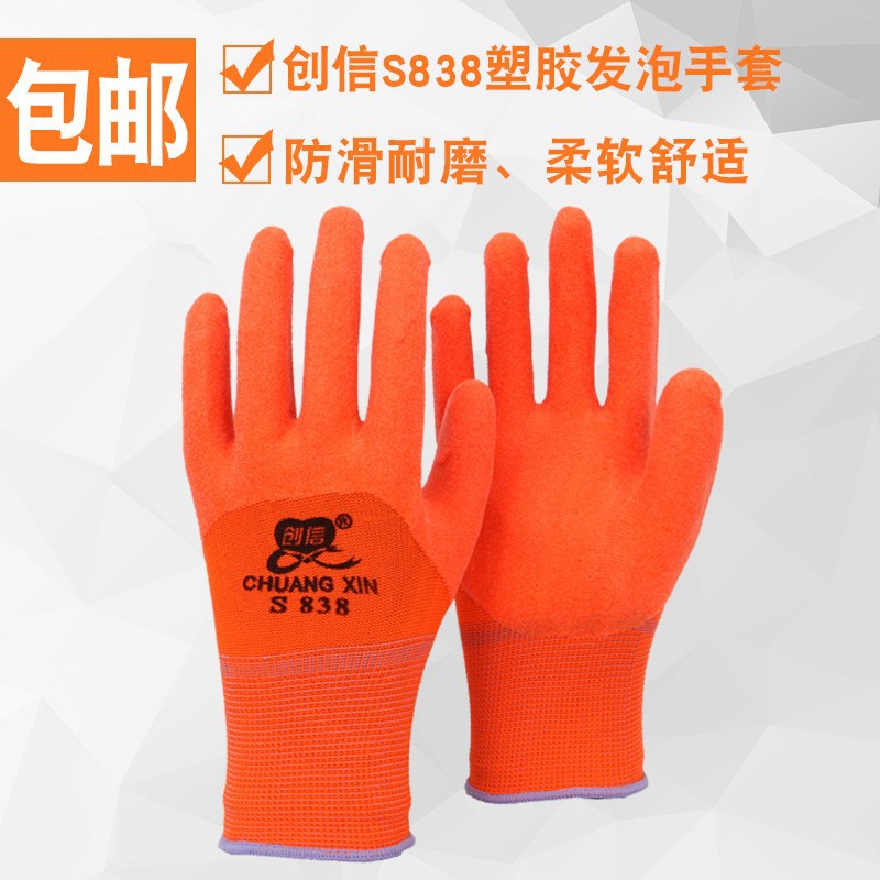 Chuangxin S838 장갑 노동 보호 담근 고무 내마모성 작업 라텍스 폼 젖빛 미끄럼 방지 편안한 통기성 고무 장갑