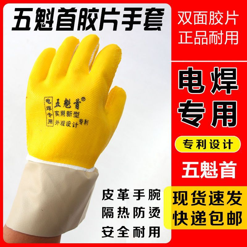 Wukuishou 풀 접착제 전기 용접 특수 가죽 손목 두꺼운 내마모성 소프트 필름 순면 실 접착제 미끄럼 방지 노동 보호 장갑스토어 가기