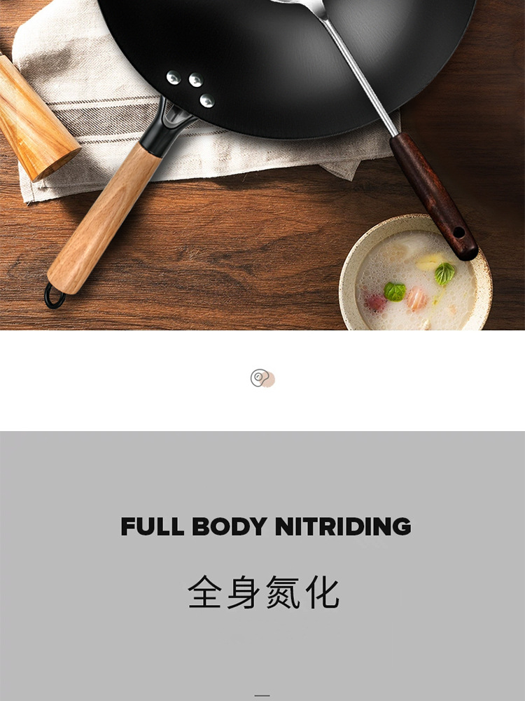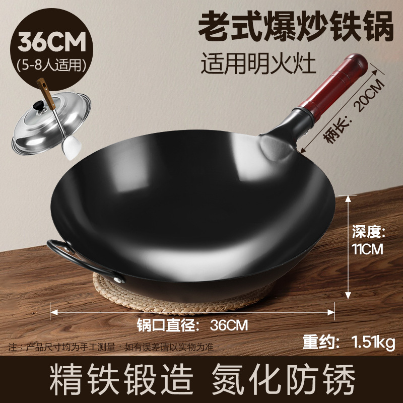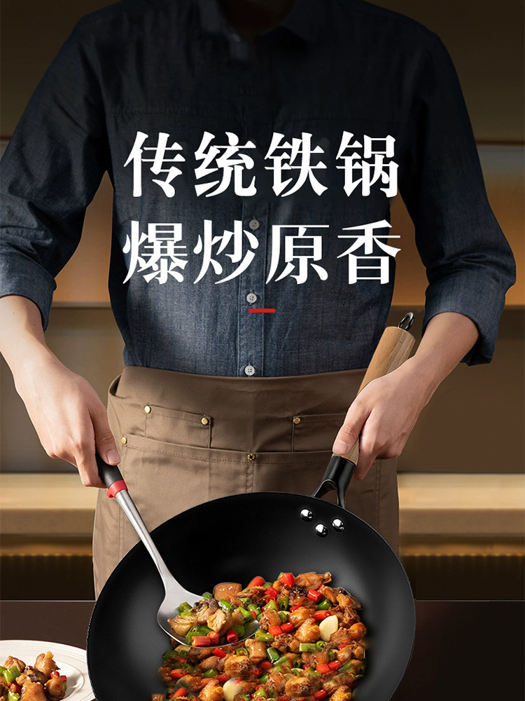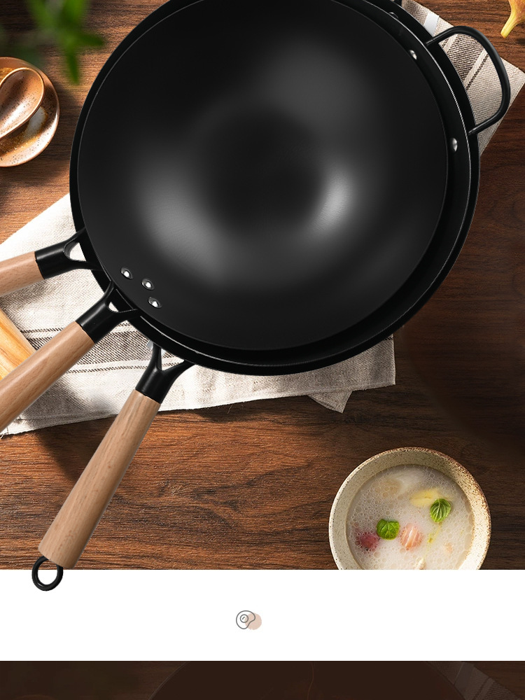 구식 철 냄비, 가정용 붙지 않는 냄비, 코팅되지 않은 냄비, 레스토랑 요리사 특수 냄비, 둥근 바닥의 고급 철 냄비 제조업체스토어 가기