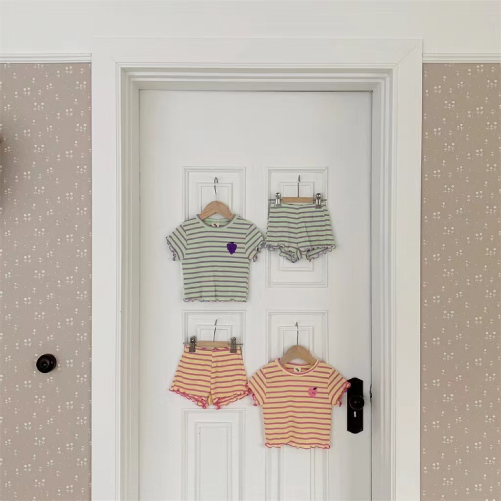 인 한국식 베이비 스트라이프 이어 엣지 세트 과일 크루넥 편안한 모든 매치 패셔너블 세트스토어 가기