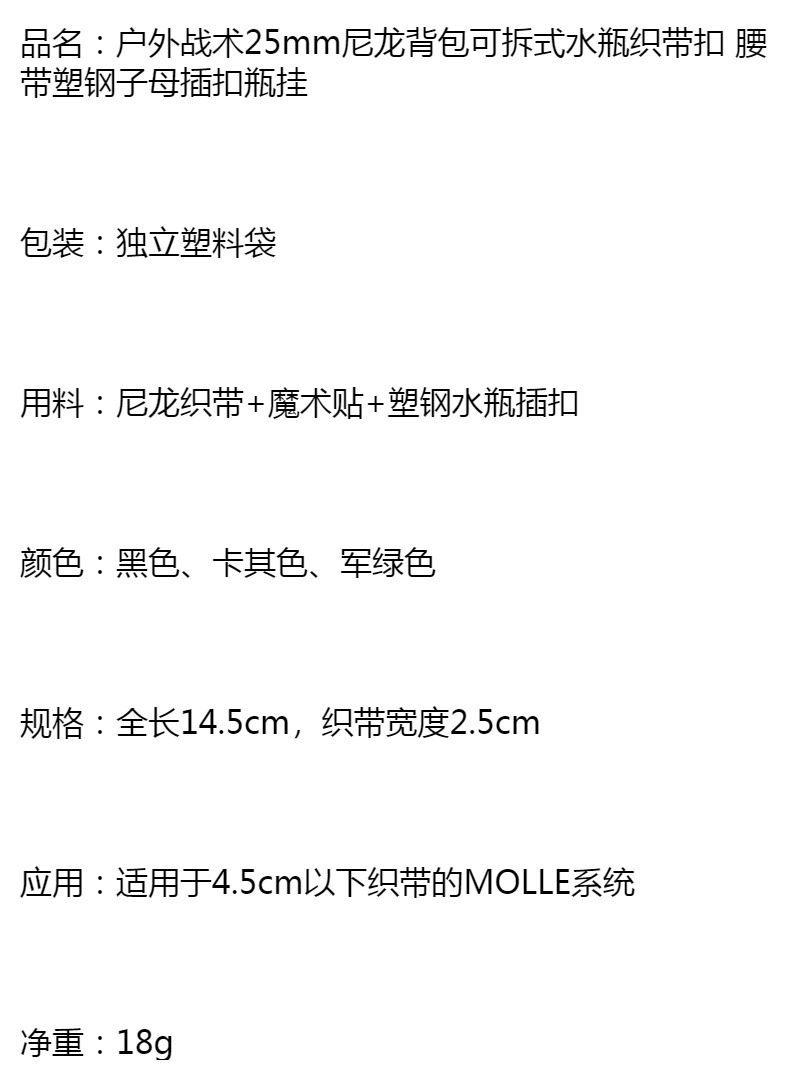 전술 나일론 리본 물병 교수형 버클 다기능 등산 버클 플라스틱 미네랄 워터 클립 버클 물병 빠른 교수형 버클