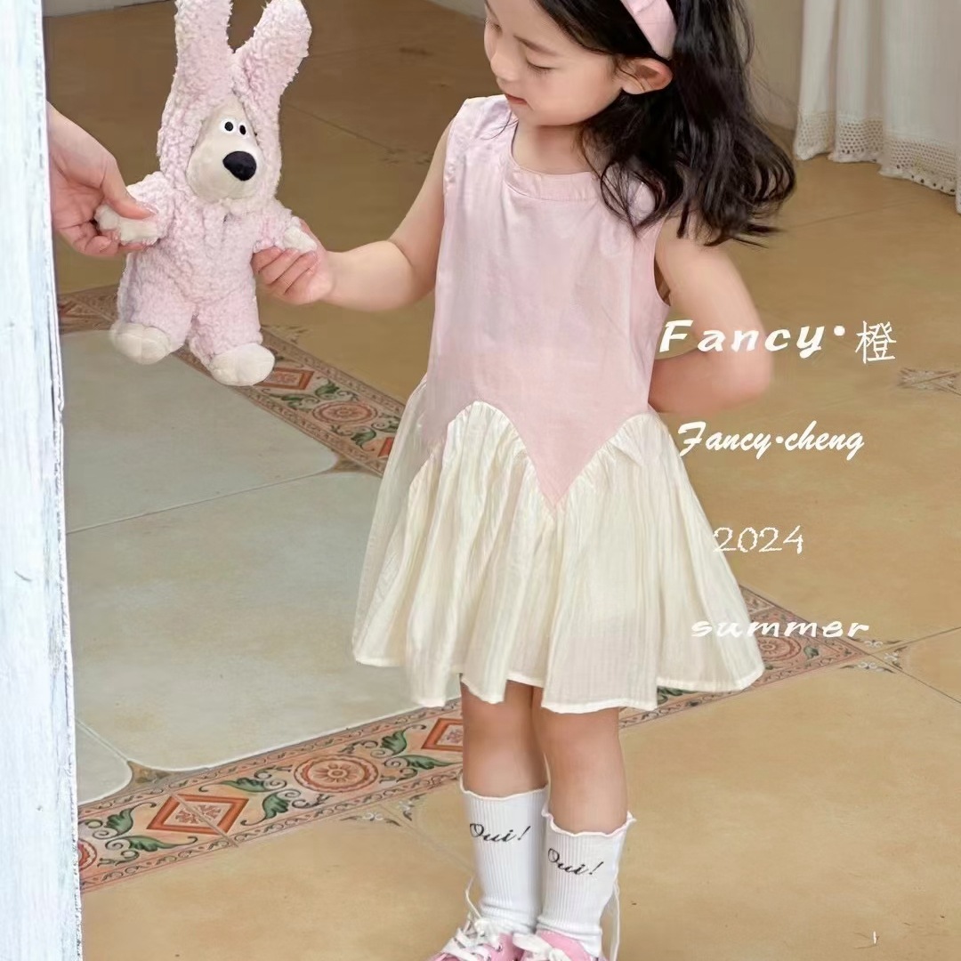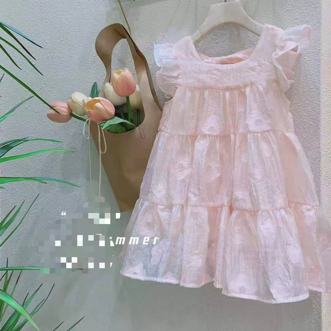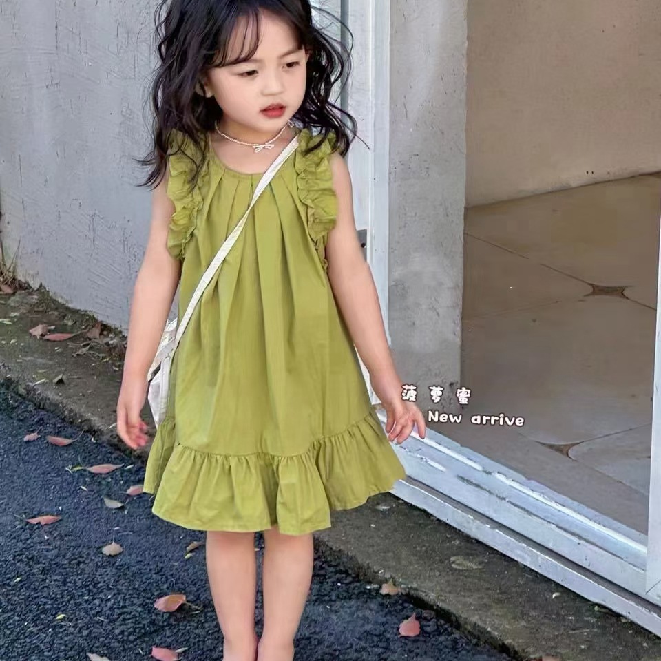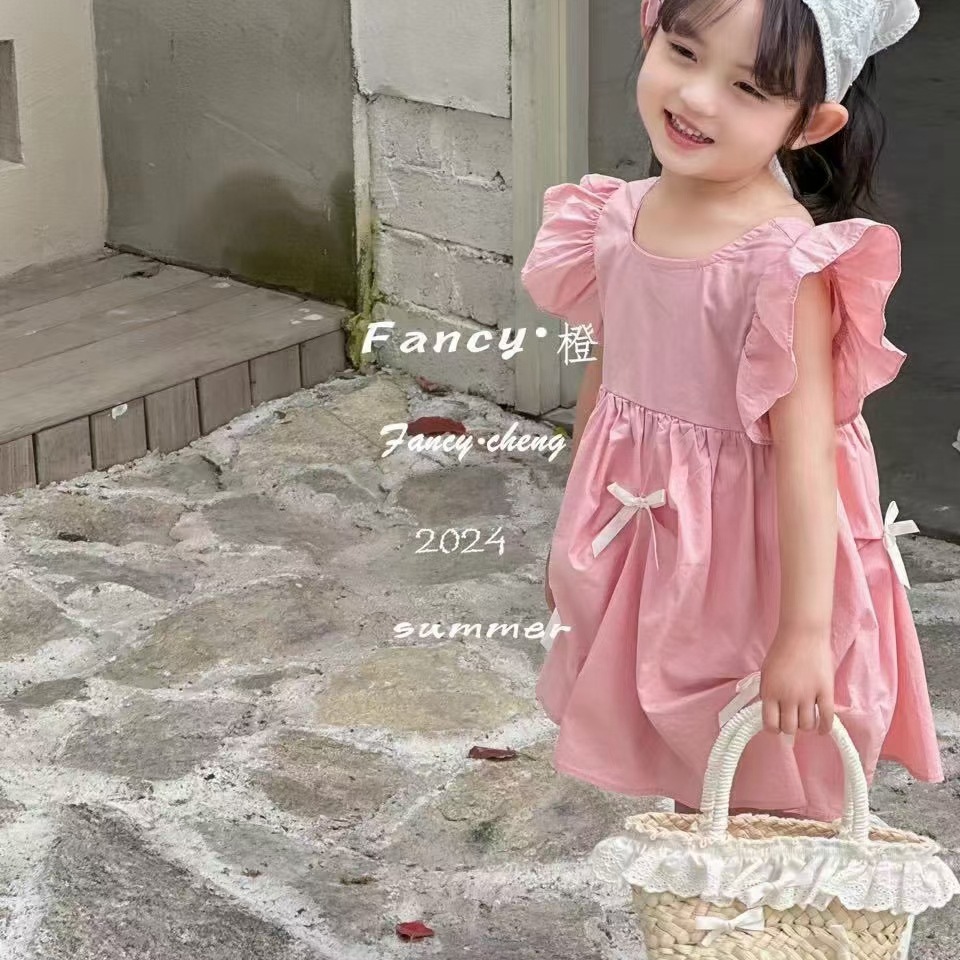 어린 소녀 1 ~ 6 세 소녀 면화 스커트 소녀 여름 스커트 어린이 드레스 2023 새로운 파우더 데이