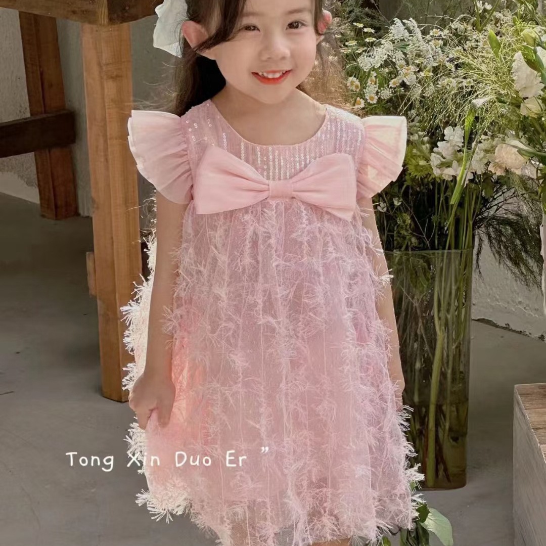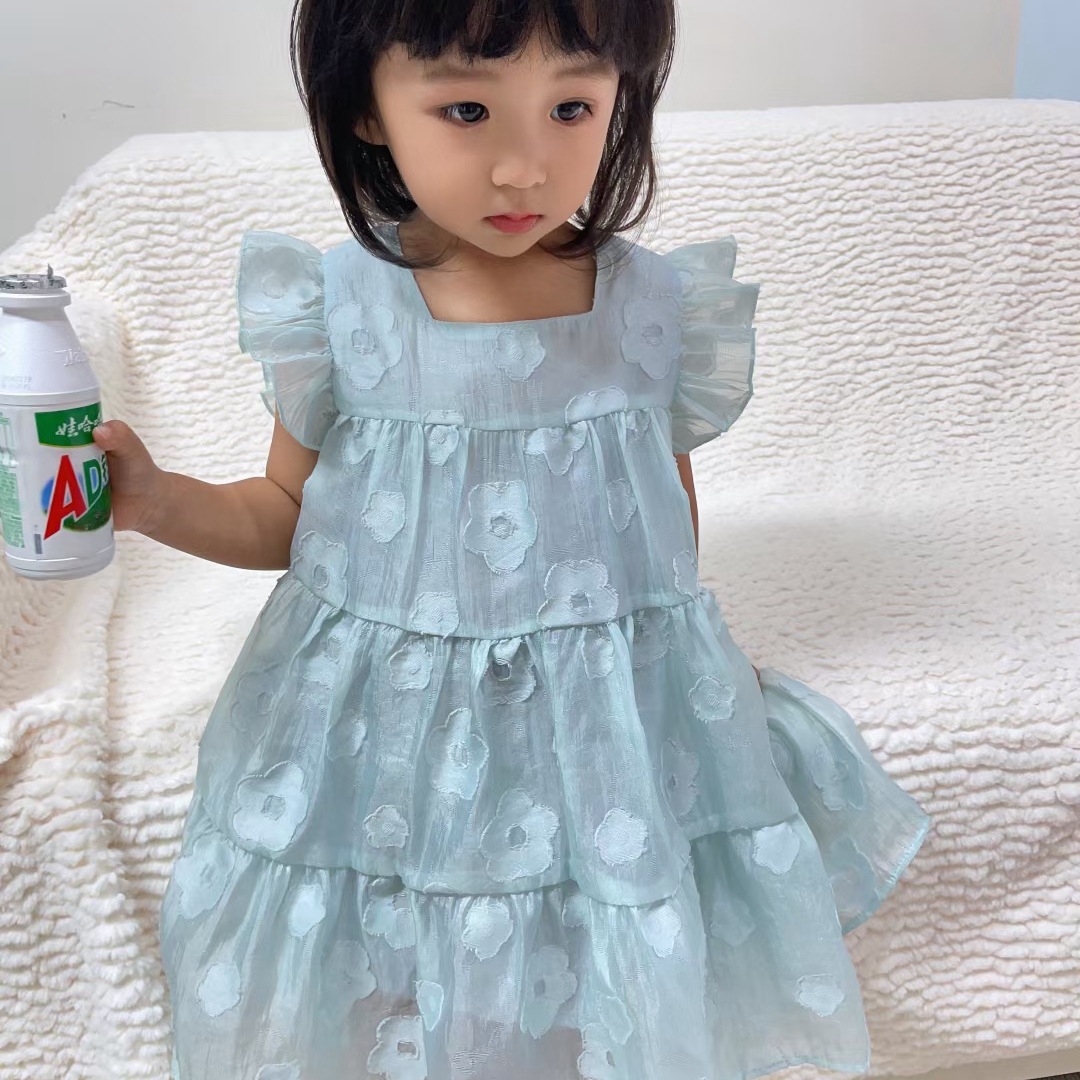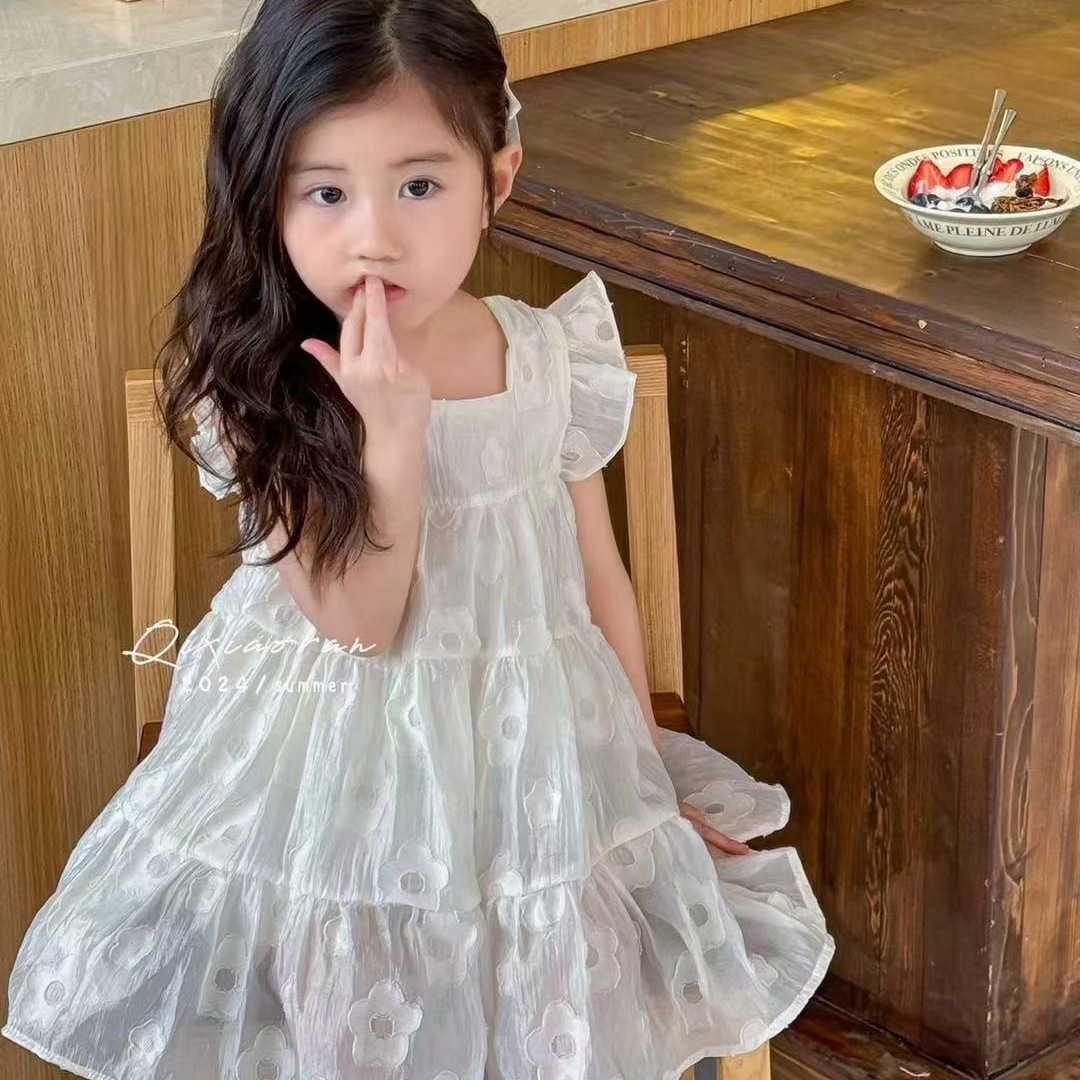 어린 소녀 1 ~ 6 세 소녀 면화 스커트 소녀 여름 스커트 어린이 드레스 2023 새로운 파우더 데이
