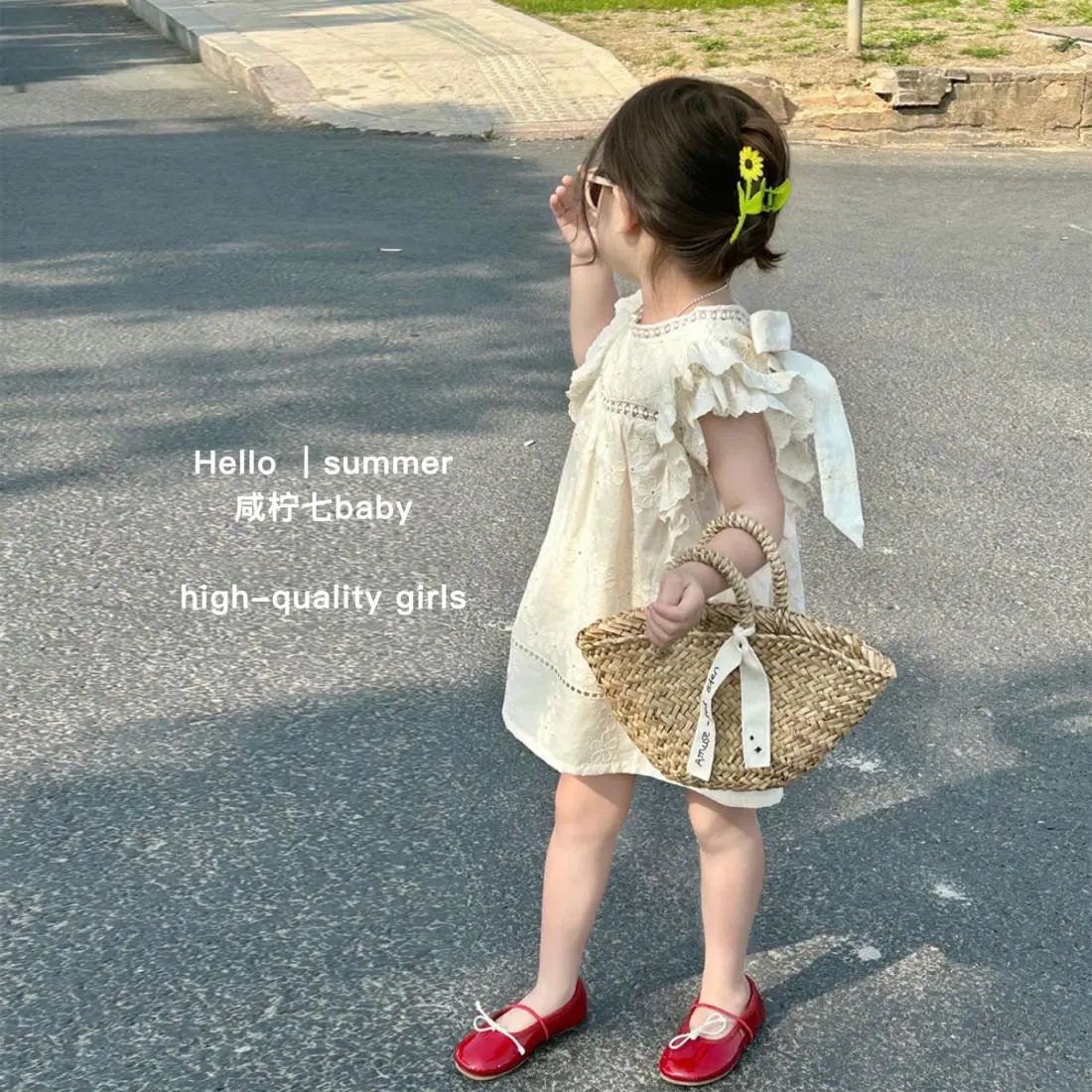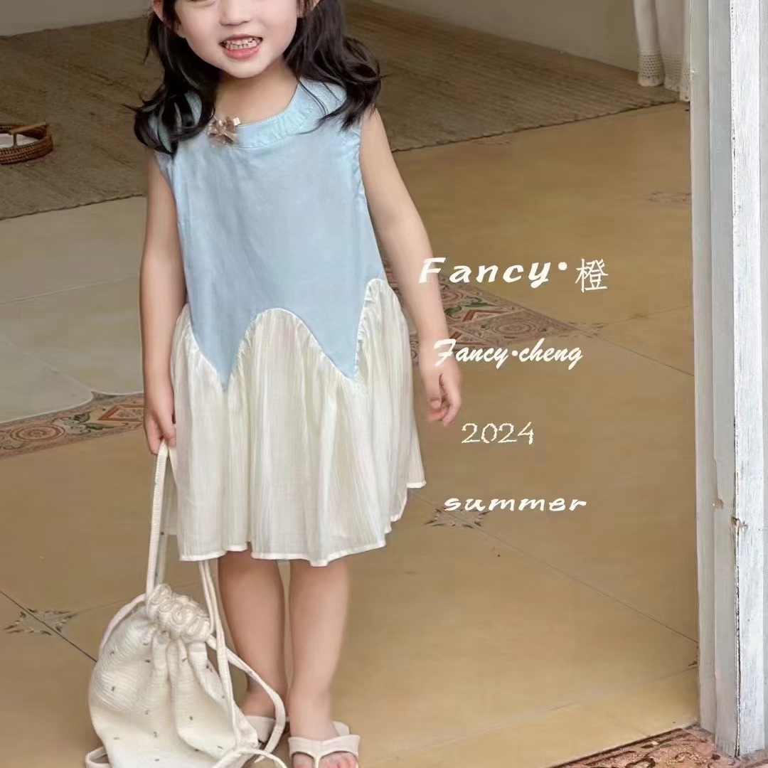 어린 소녀 1 ~ 6 세 소녀 면화 스커트 소녀 여름 스커트 어린이 드레스 2023 새로운 파우더 데이스토어 가기