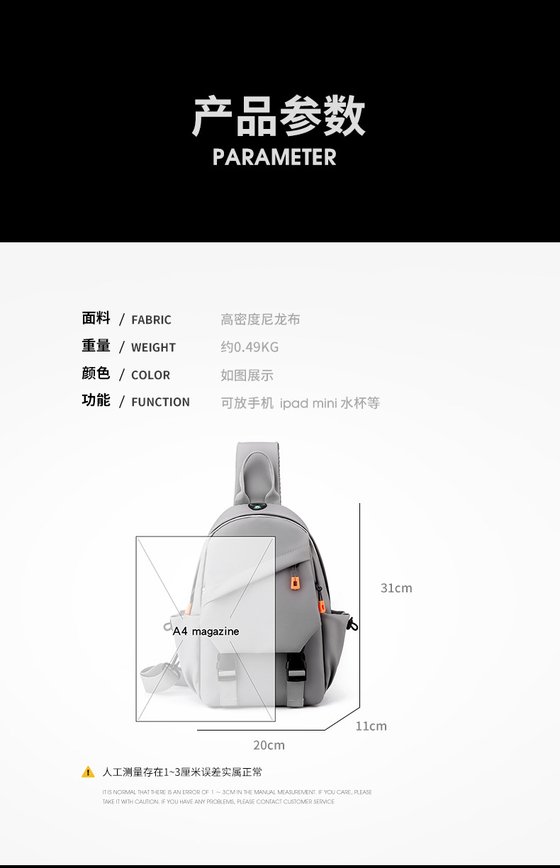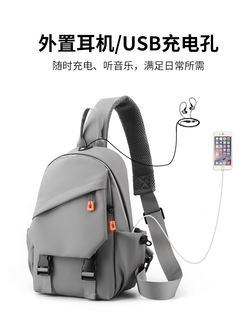새로운 클래식 캐주얼 남성용 가슴 가방 한국 스타일 유행 크로스 바디 심플 숄더 백 다기능 USB 충전 가슴 가방