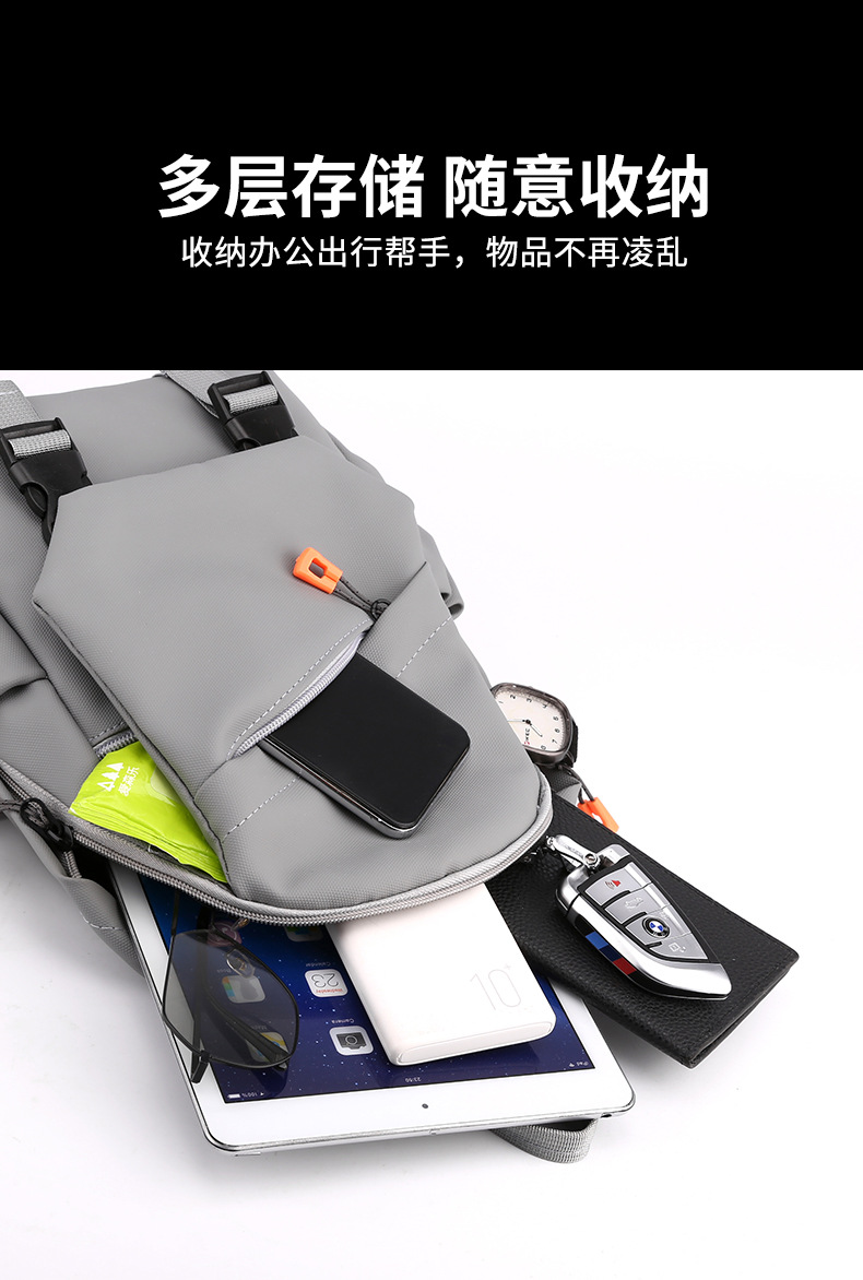 새로운 클래식 캐주얼 남성용 가슴 가방 한국 스타일 유행 크로스 바디 심플 숄더 백 다기능 USB 충전 가슴 가방스토어 가기