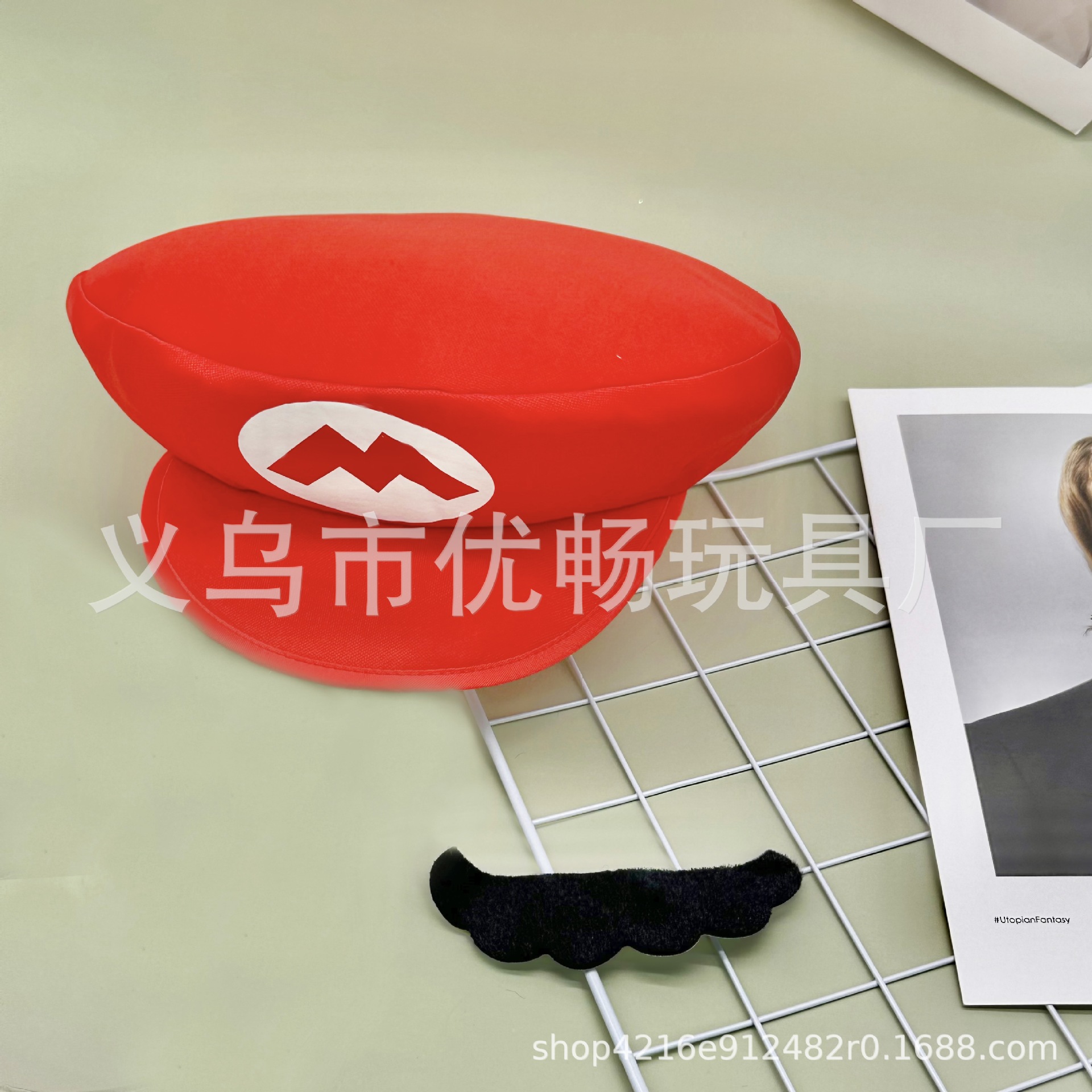 슈퍼 마리오 브라더스 모자 장식 슈퍼 마리오 수염 모자 드레스 어린이 코스프레 장식스토어 가기