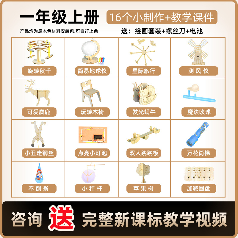 • 【2026년 신형 나무 세트】 1학년 1학기 【16세트】 + 색연필 증정 + 도구 + 건전지 + 전체 영상 강좌 (고급 컬러 박스 포장)