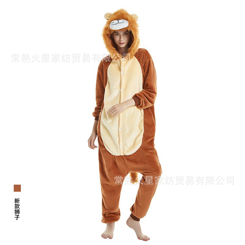 새로운 동물 원피스 잠옷 만화 사자 플란넬 가정 옷 두꺼운 기모 잠자는 편안한 겉옷스토어 가기