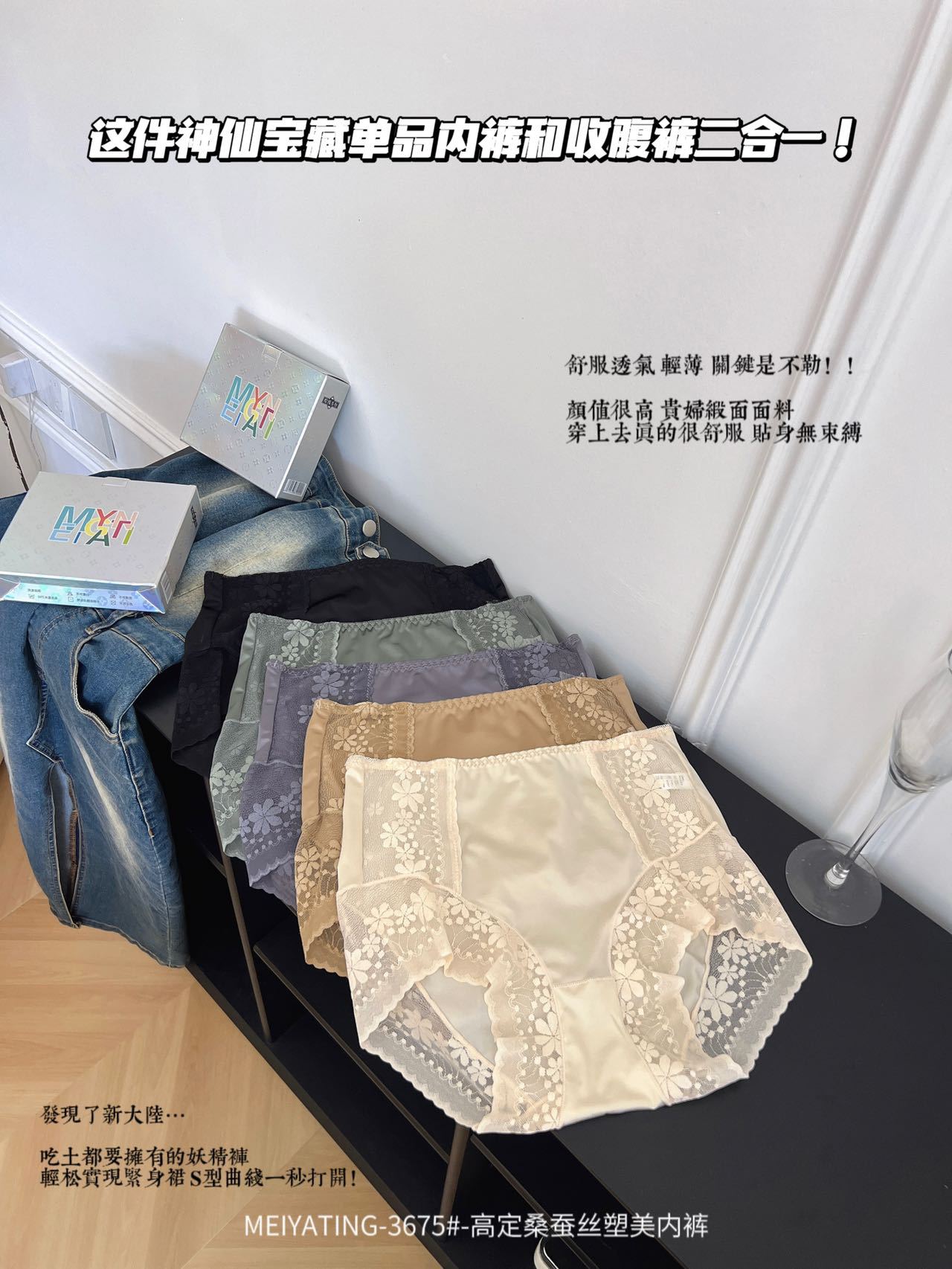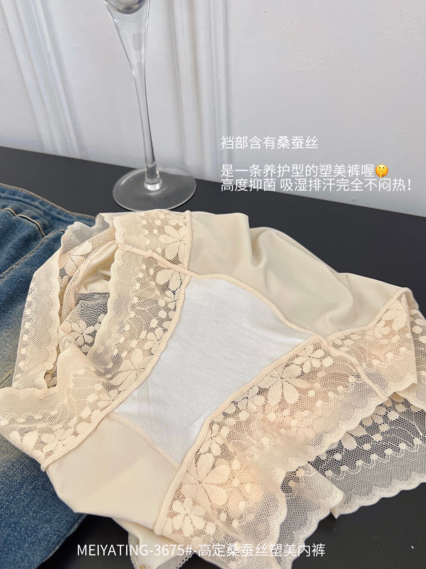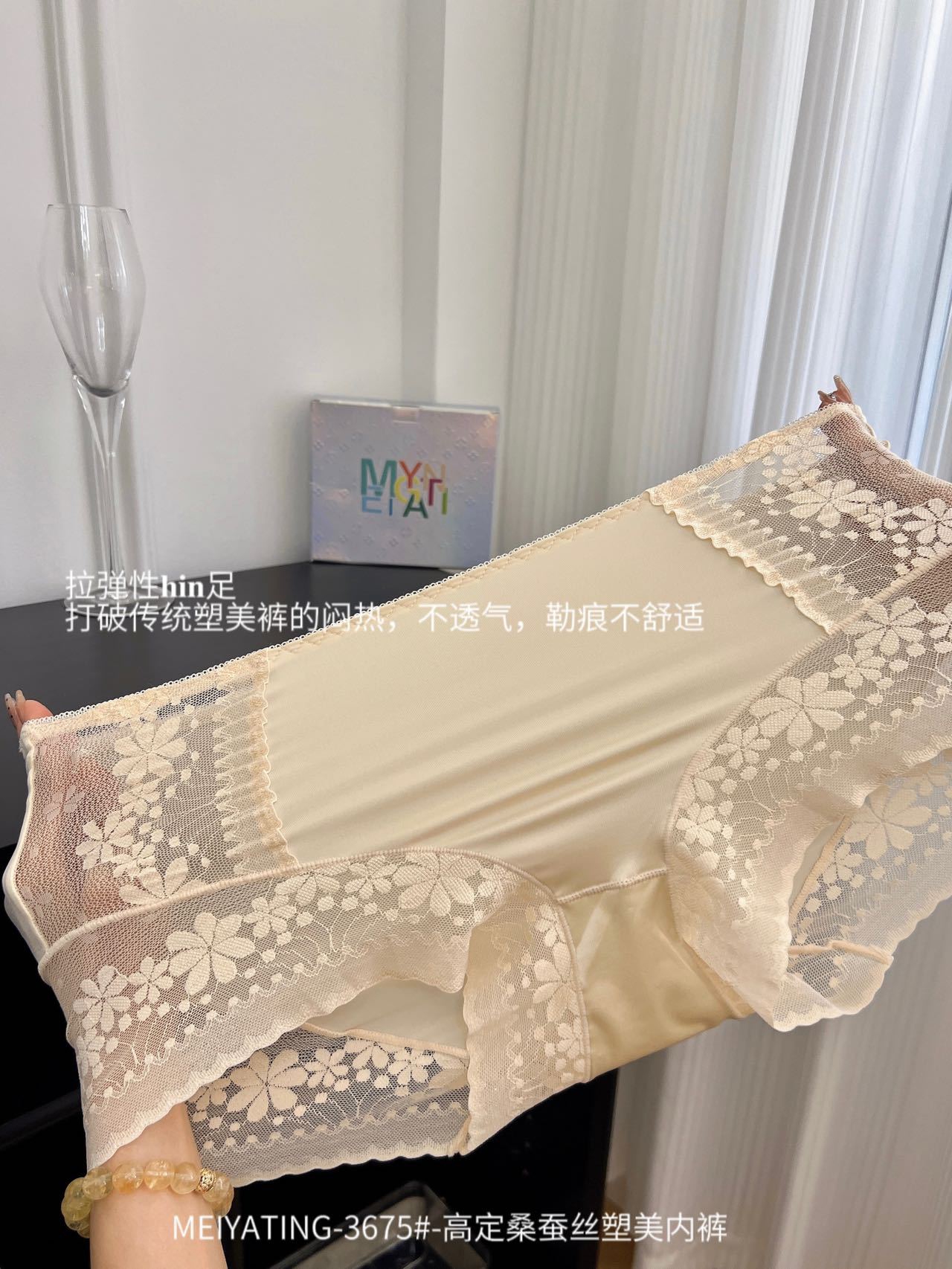 여름 새로운 하이 세트 감각 없음 고탄성 스티칭 레이스 여아 팬티 뽕나무 실크 바닥 스톨 플라스틱 미용 여성 속옷스토어 가기