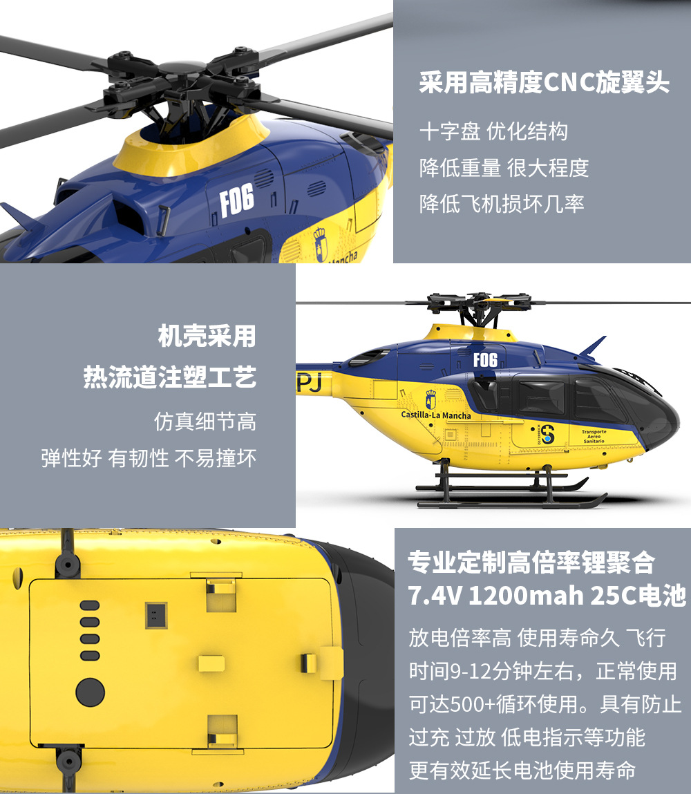 1>根据欧直EC135直升机36:1比例缩小,具有高仿真外观细节 酷炫灯光。