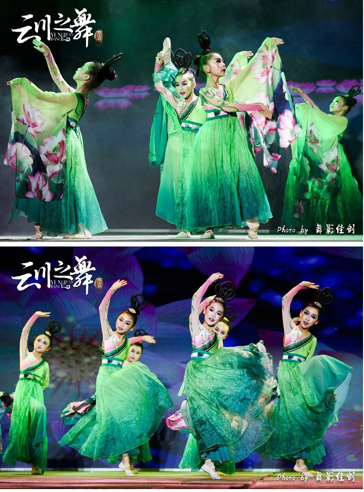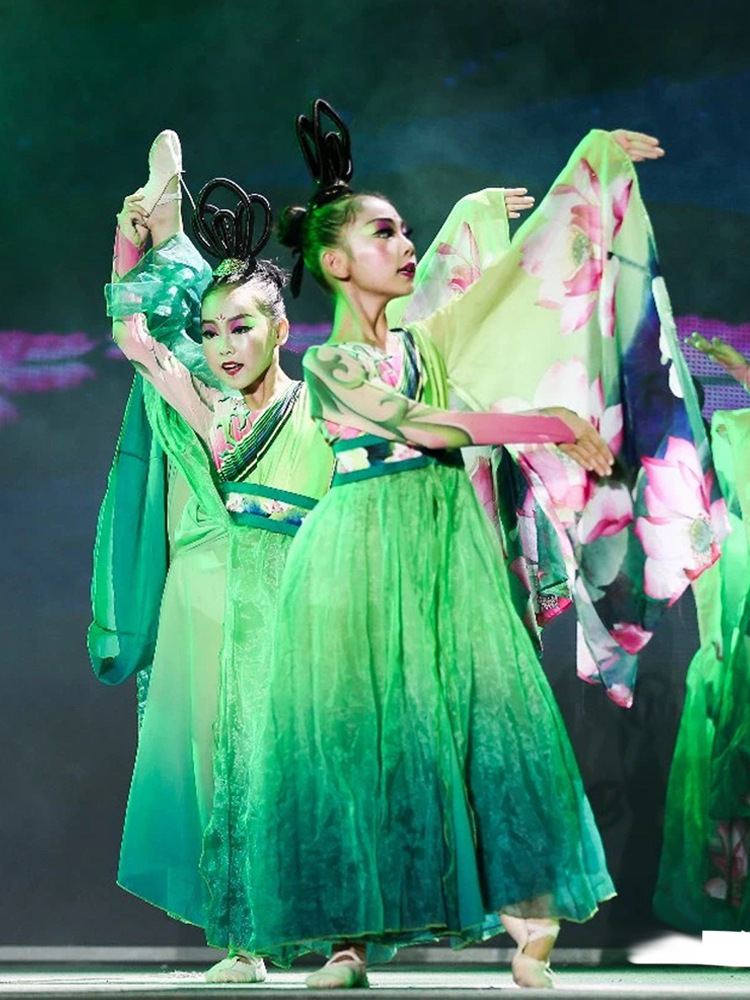 Yunchuan 댄스 플로우 물 부동 연꽃 어린이 의상 여아 연꽃 클래식 댄스 cailian 긴 원피스 댄스 공연 의상