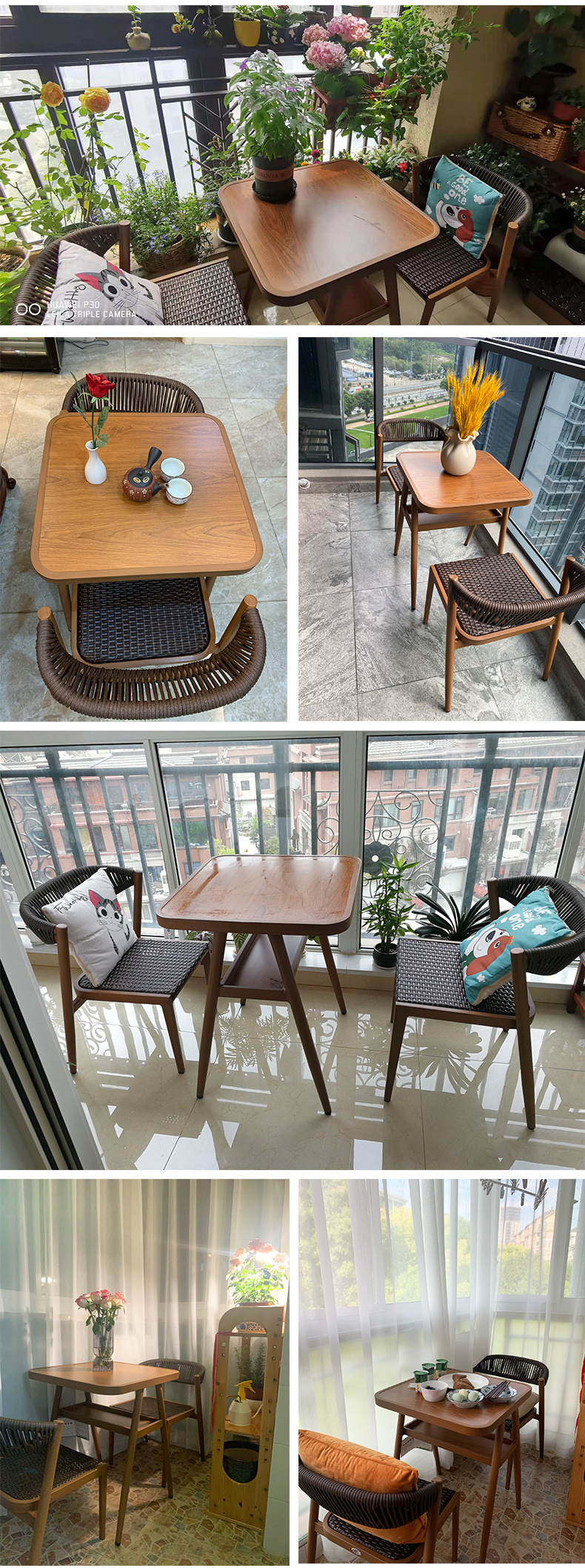 야외 발코니 테이블과 의자 티 테이블과 의자 조합 작은 아파트 등나무 의자 현대 간단한 캐주얼 3 종 세트 발코니 작은 테이블과 의자스토어 가기