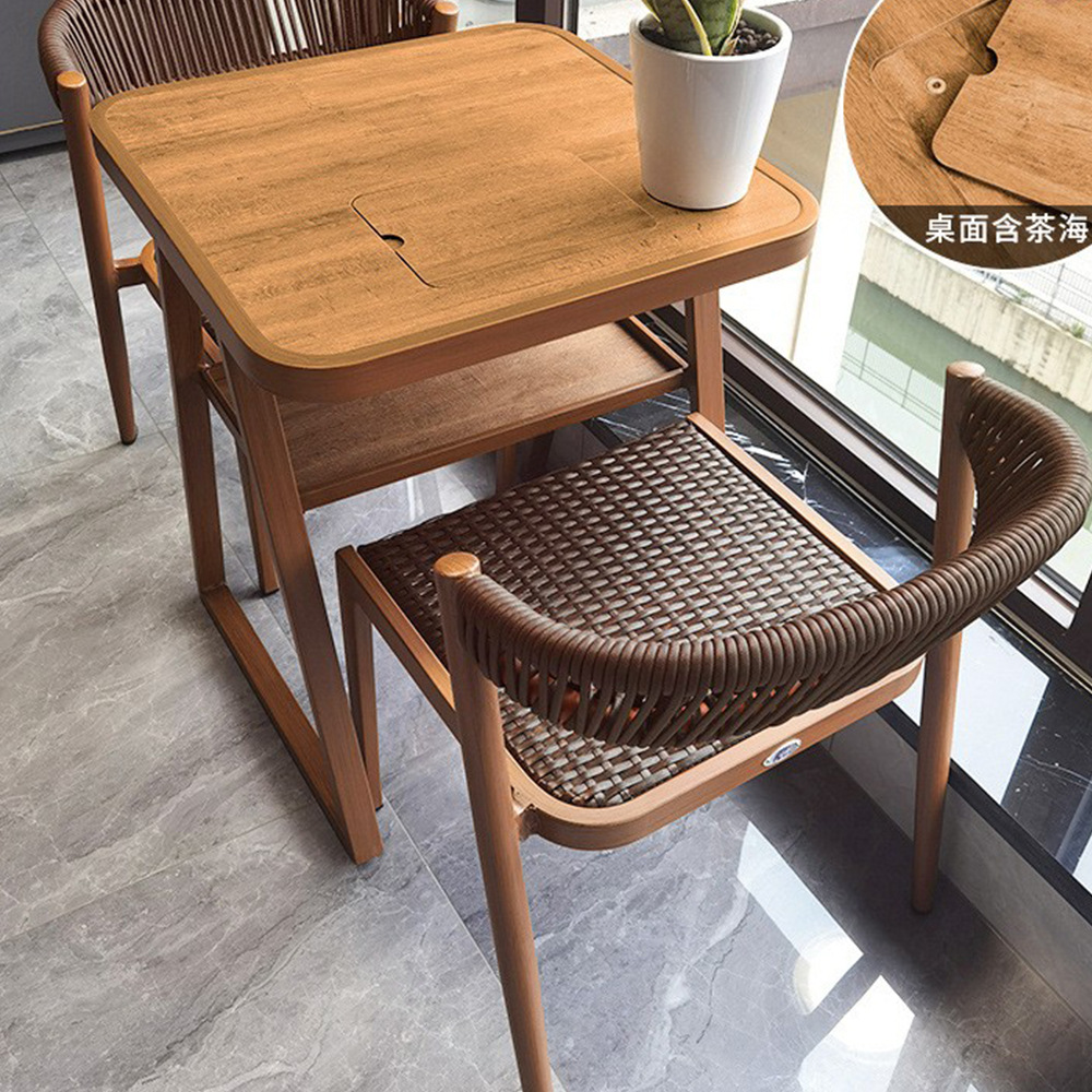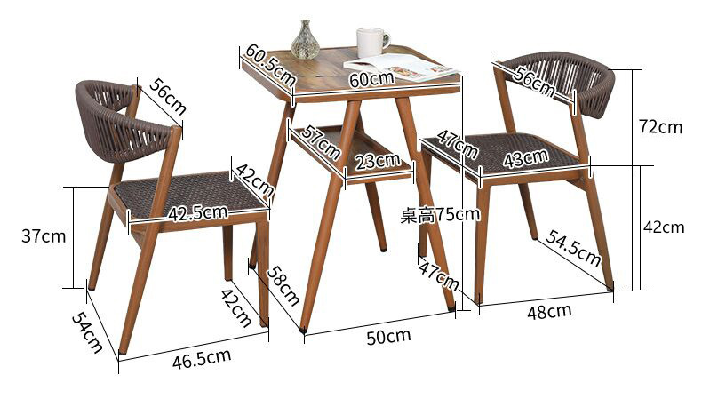 • 1 [정사각형 테이블 60*60.5, 차 바다 포함] + 의자 2 개 (다크 브라운)