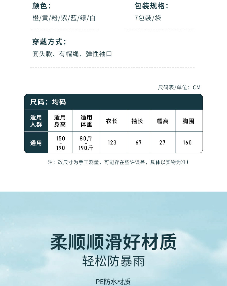 ETRAVEL 쉬운 여행 일회용 비옷 독립 7 팩 긴 PE 투명 두꺼운 일회용 카드 비옷