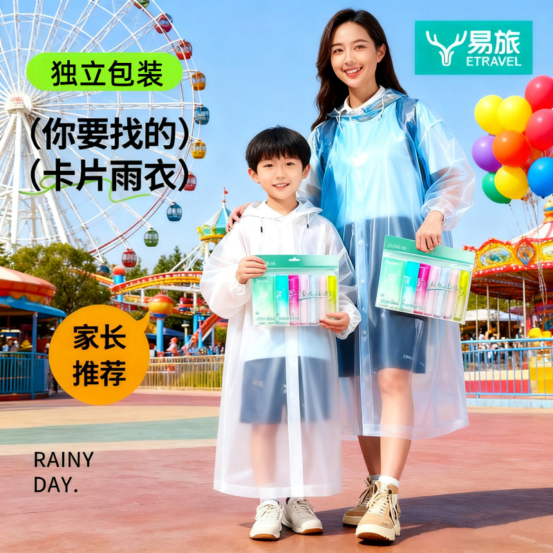ETRAVEL 쉬운 여행 일회용 비옷 독립 7 팩 긴 PE 투명 두꺼운 일회용 카드 비옷스토어 가기