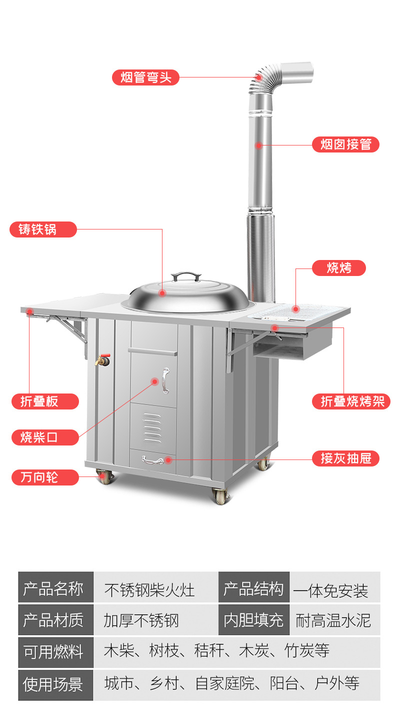일체형 에너지 절약형 스테인레스 스틸 장작 스토브, 장작 스토브, 농촌 가정용 야외 이동식 대형 철 냄비 토양 스토브