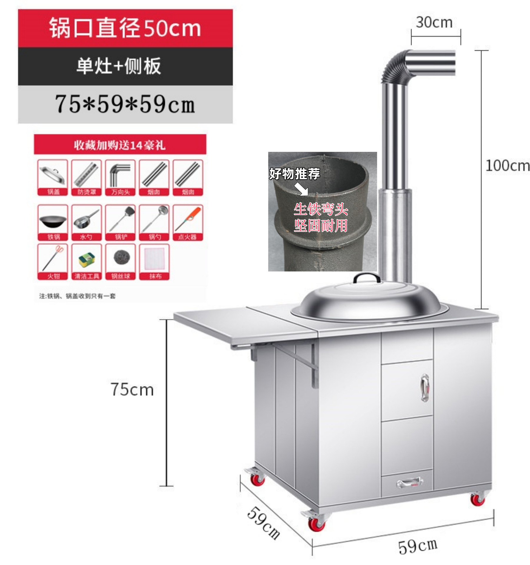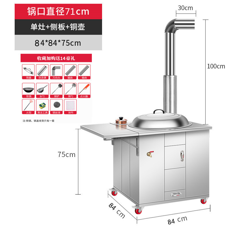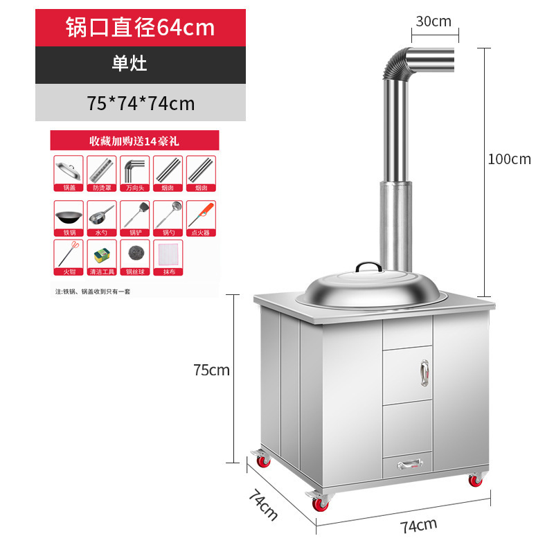 일체형 에너지 절약형 스테인레스 스틸 장작 스토브, 장작 스토브, 농촌 가정용 야외 이동식 대형 철 냄비 토양 스토브스토어 가기