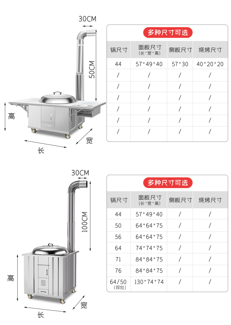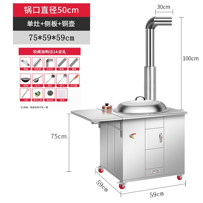• 304 스테인레스 스틸 업그레이드 (4cm) 두꺼운 56cm - 싱글 스토브 + 측면 패널 + 구리 주전자