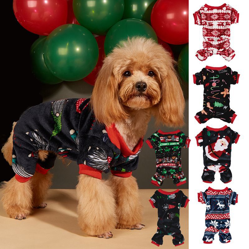 크리스마스 애완 동물 의류 캔디 엘크 눈송이 패턴 스레드 라운드 넥 산호 양털 따뜻한 개 네 다리 양털스토어 가기