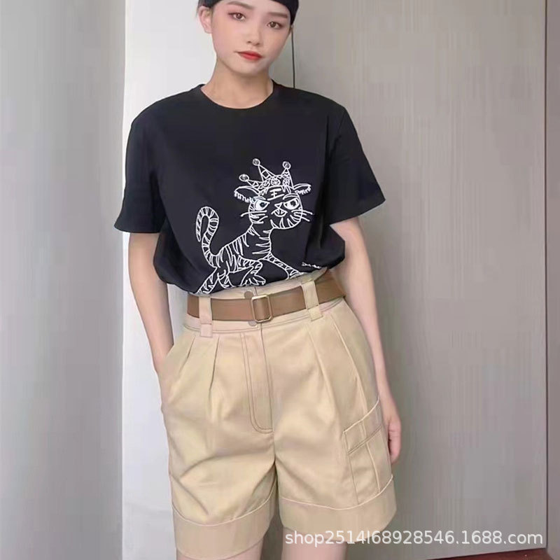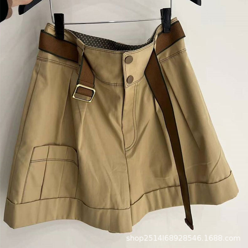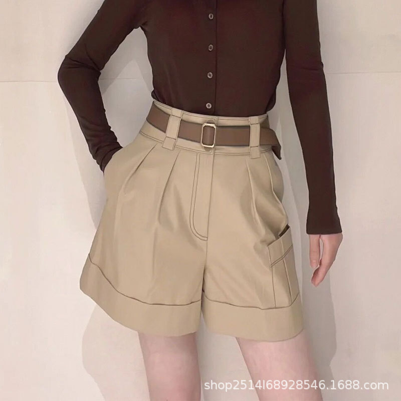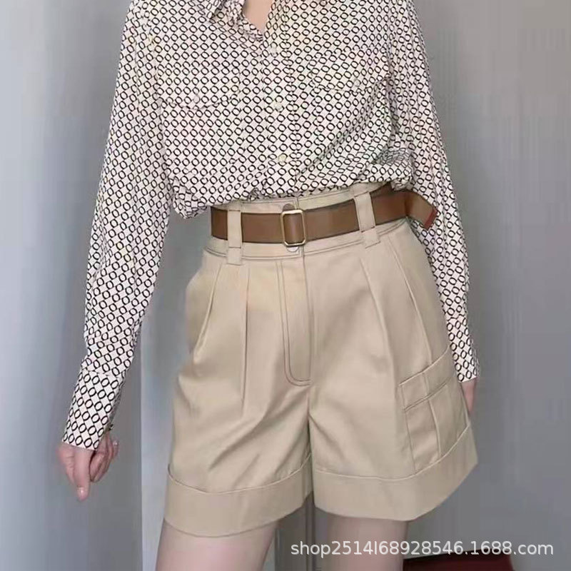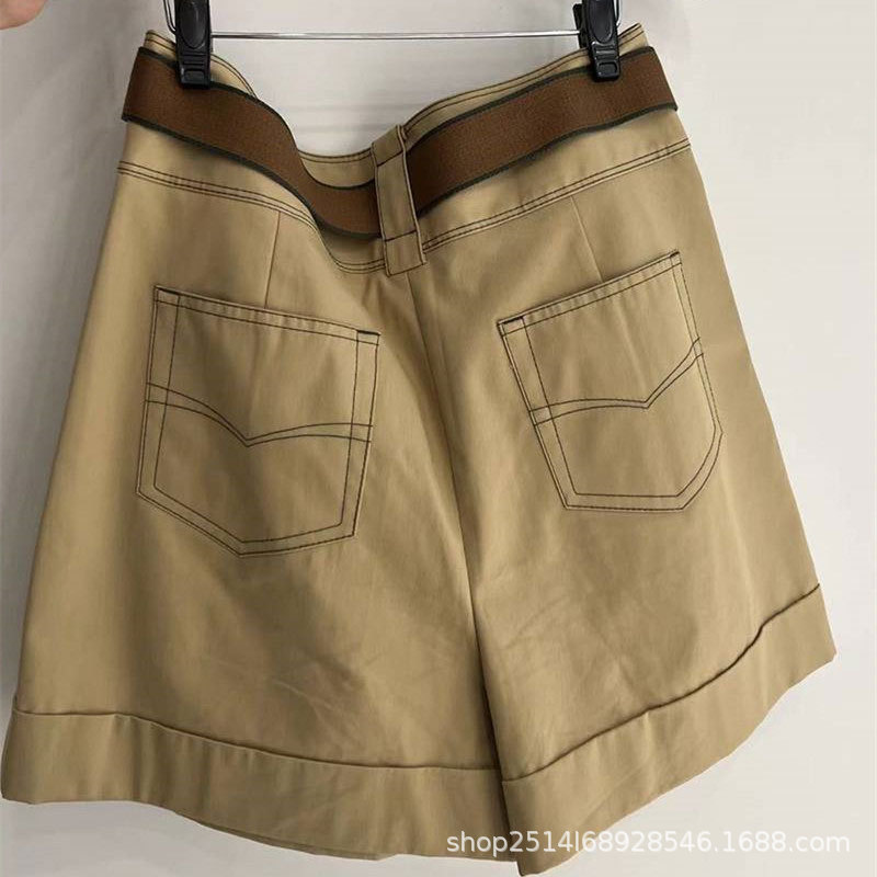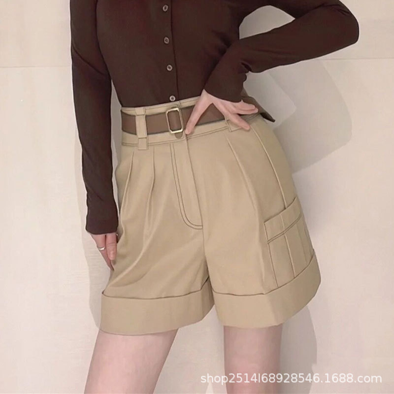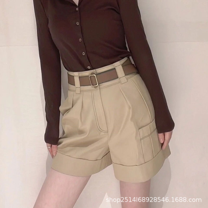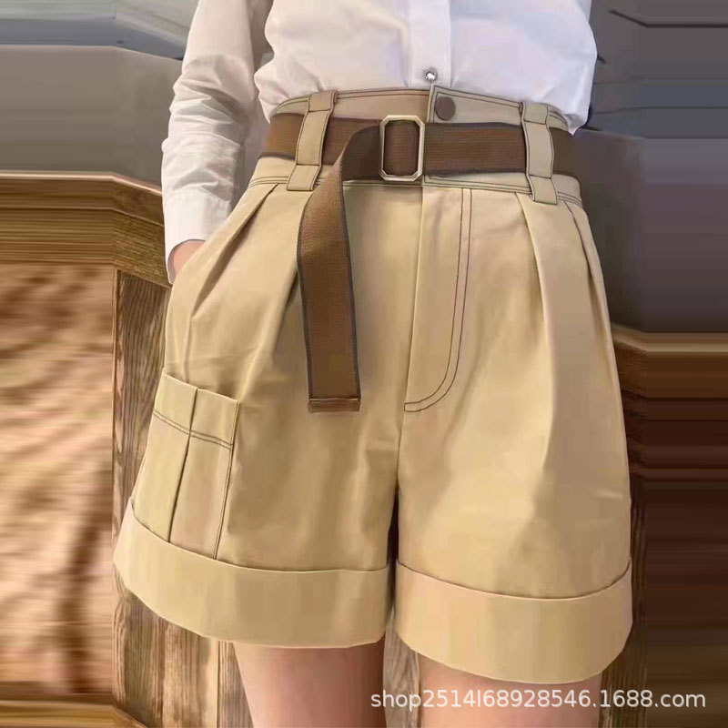 신상품 2023 년 여름 하이 웨이스트 올매치 카키 벨트 와이드 레그 작업복 반바지스토어 가기
