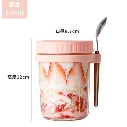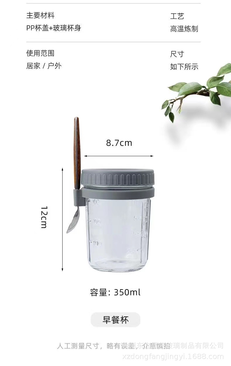 유리 걸이형 스푼 오버나이트 오트밀 컵 요거트 컵 뚜껑과 스푼 포함 밀폐형 컵 고급스러운 파멜라 동일 스타일 도매스토어 가기