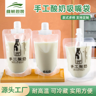 신도매 일회용 흡입 노즐 백 투명 고온 내성 밀크티 자립 백 밀크젤리 식품 포장 백스토어 가기