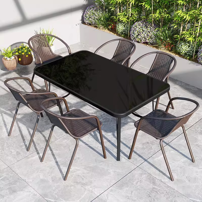 • 검은 색 유리 테이블 150 개 + 구멍이없는 의자 6 개
