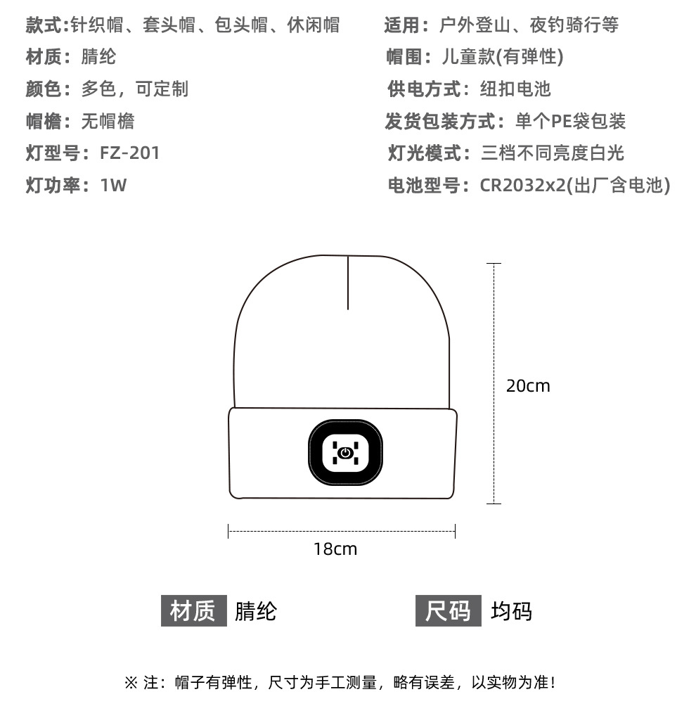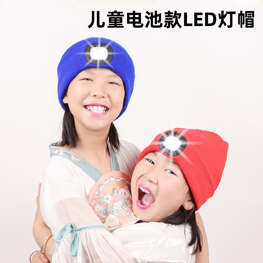 어린이 빛나는 모자 조명 배터리 LED 모자 가벼운 니트 유럽과 미국의 국경 야외 따뜻한 울 모자 겨울