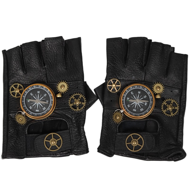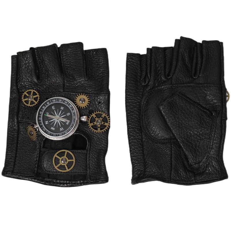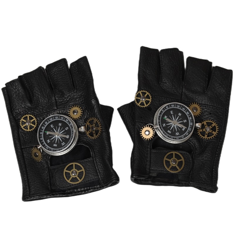 국경 간 소원 AliExpress 유럽과 미국의 스팀 펑크 가죽 장갑 기어 반 손가락 장갑 나침반 복고풍
