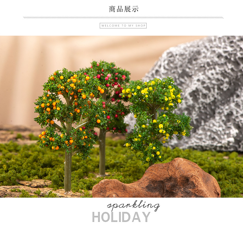 이끼 마이크로 조경 장식 플라스틱 꽃 녹색 식물 작은 나무 원예 시뮬레이션 벚꽃 오렌지 과일 나무 장식 장식품스토어 가기