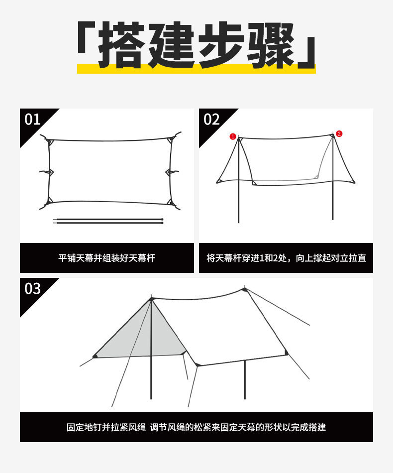 ④6/8根风绳(注:3*3米、3*4米、六角配6根)