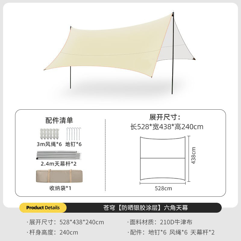 ②天幕杆1套(两根2.4米天幕杆22mm管径,配天幕杆袋)