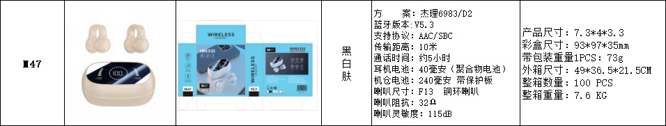 【M47】블루투스 이어폰 클립형 미러 디지털 디스플레이 개인 맞춤형 이어폰 tws 비삽입형 해외 무역 인기 상품