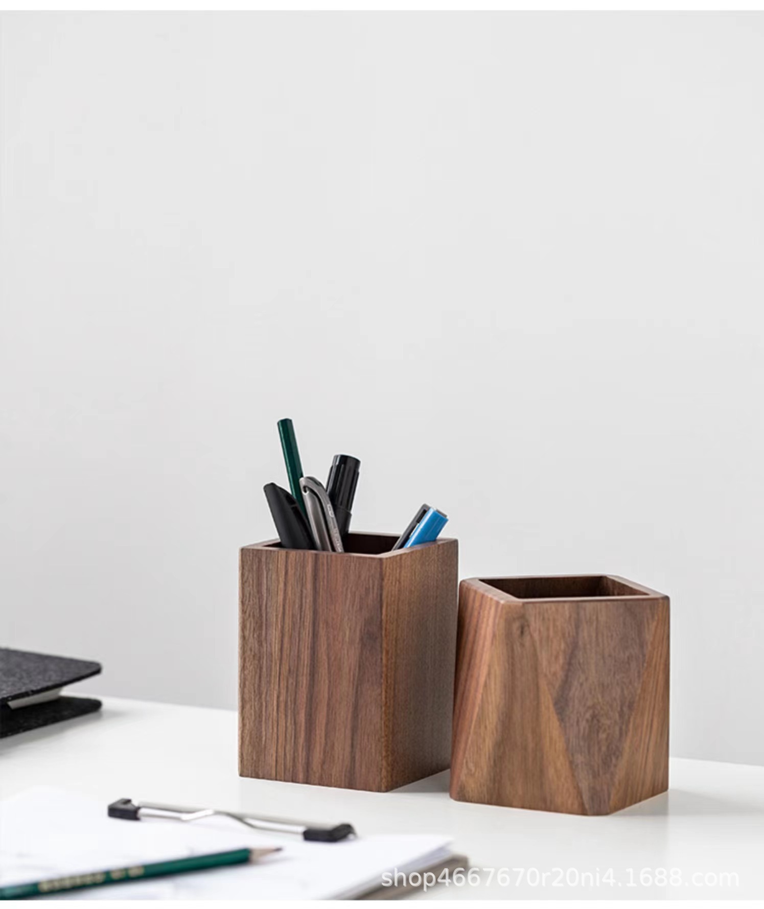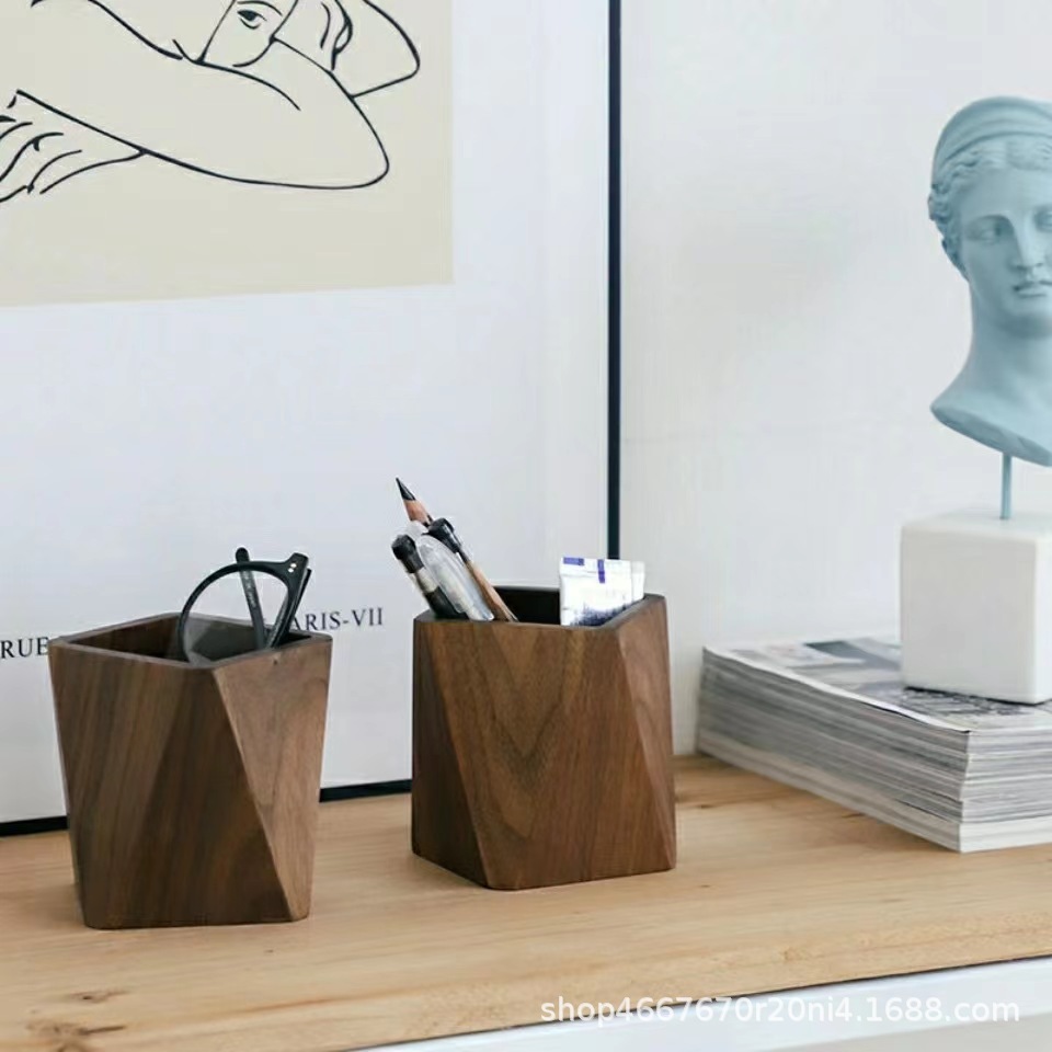 일본식 크리 에이 티브 심플 블랙 호두 펜 홀더 데스크탑 사무실 문구 보관 상자 학습 문구 선물스토어 가기