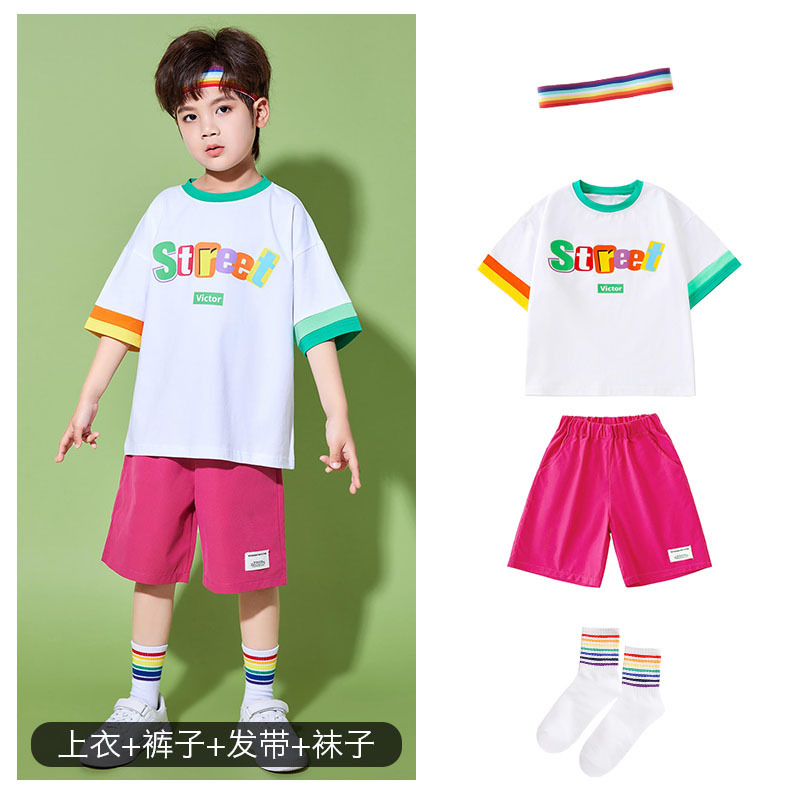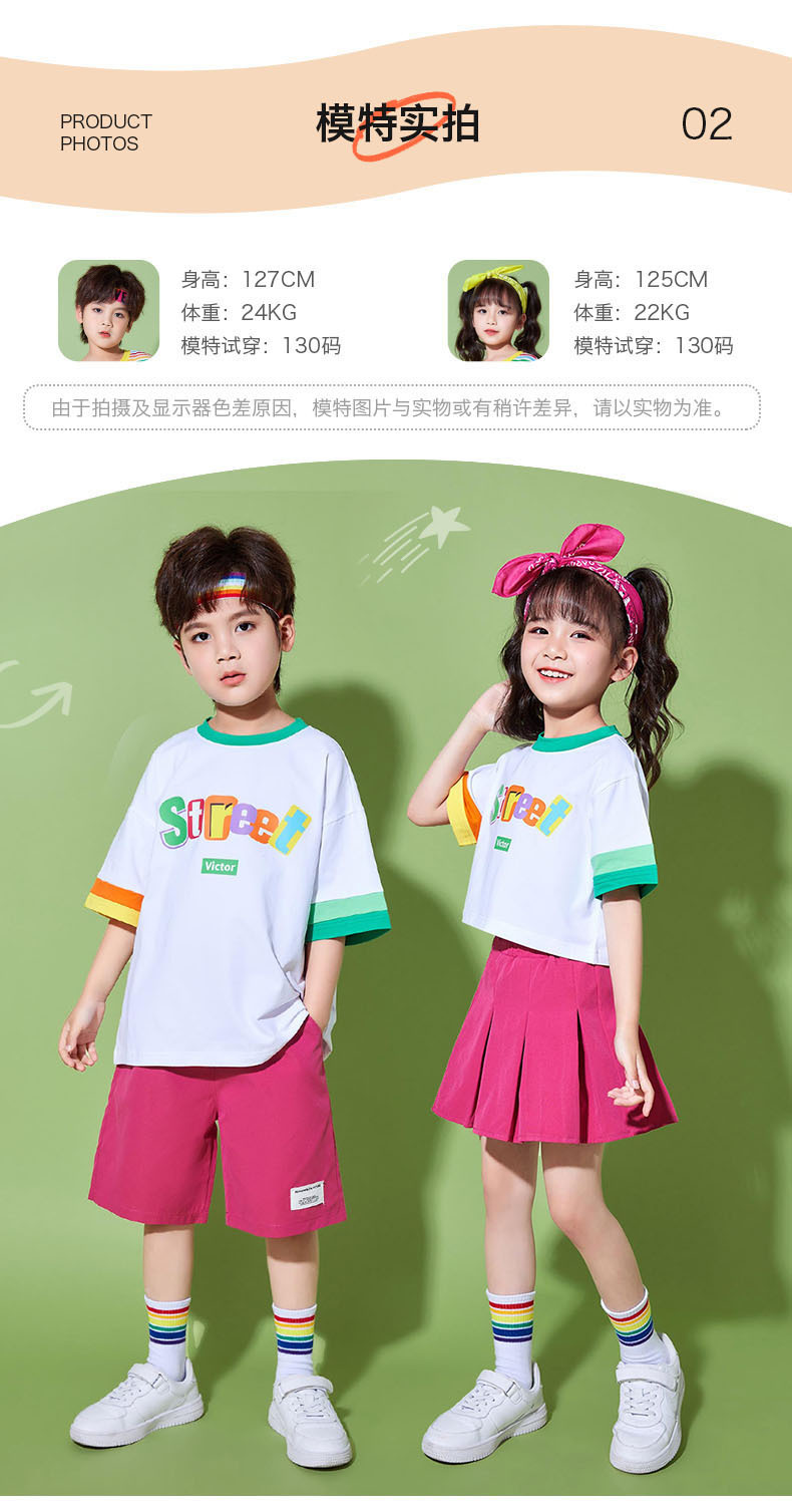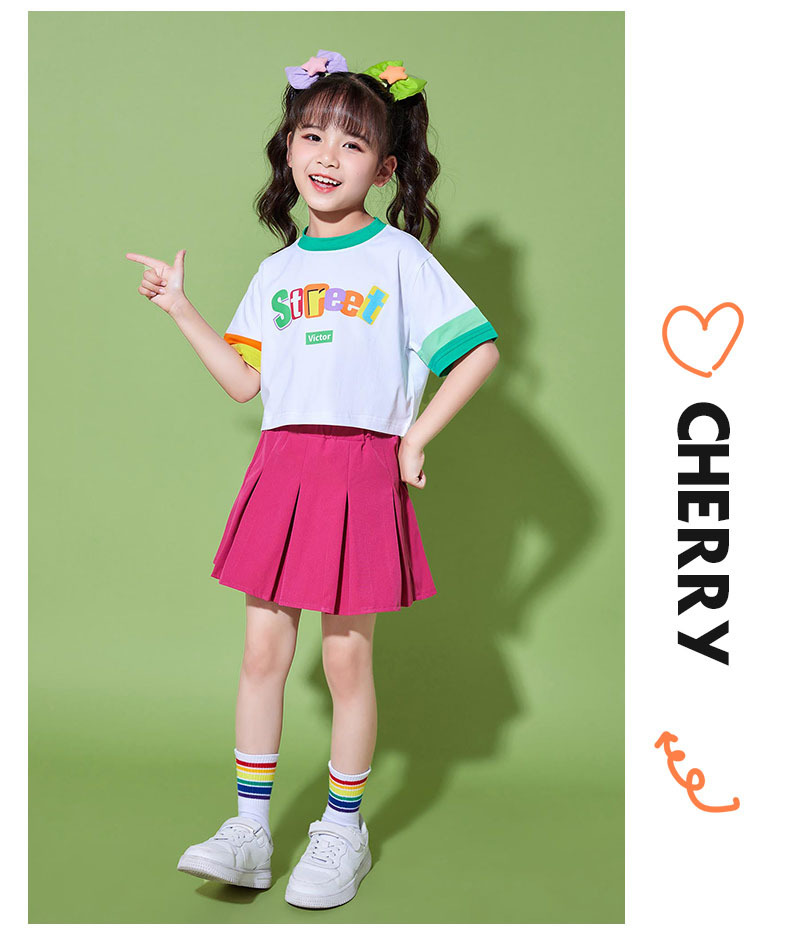 어린이 치어리딩 그룹 합창 댄스 공연 초등학교 스포츠 대회 컬러 매칭 반팔 퍼포먼스 의상 여름