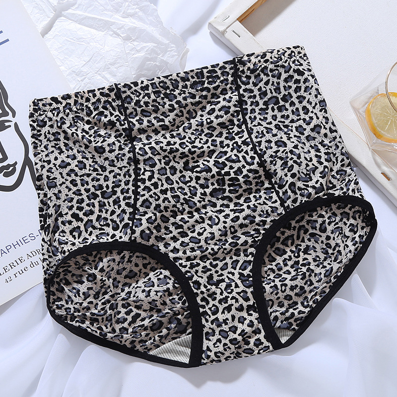 여자의 레오파드 무늬 속옷 여자의 섹시한 유혹 아이스 실크 여름 반바지 머리 얇은 하이 웨이스트 편안한 항균 순면스토어 가기